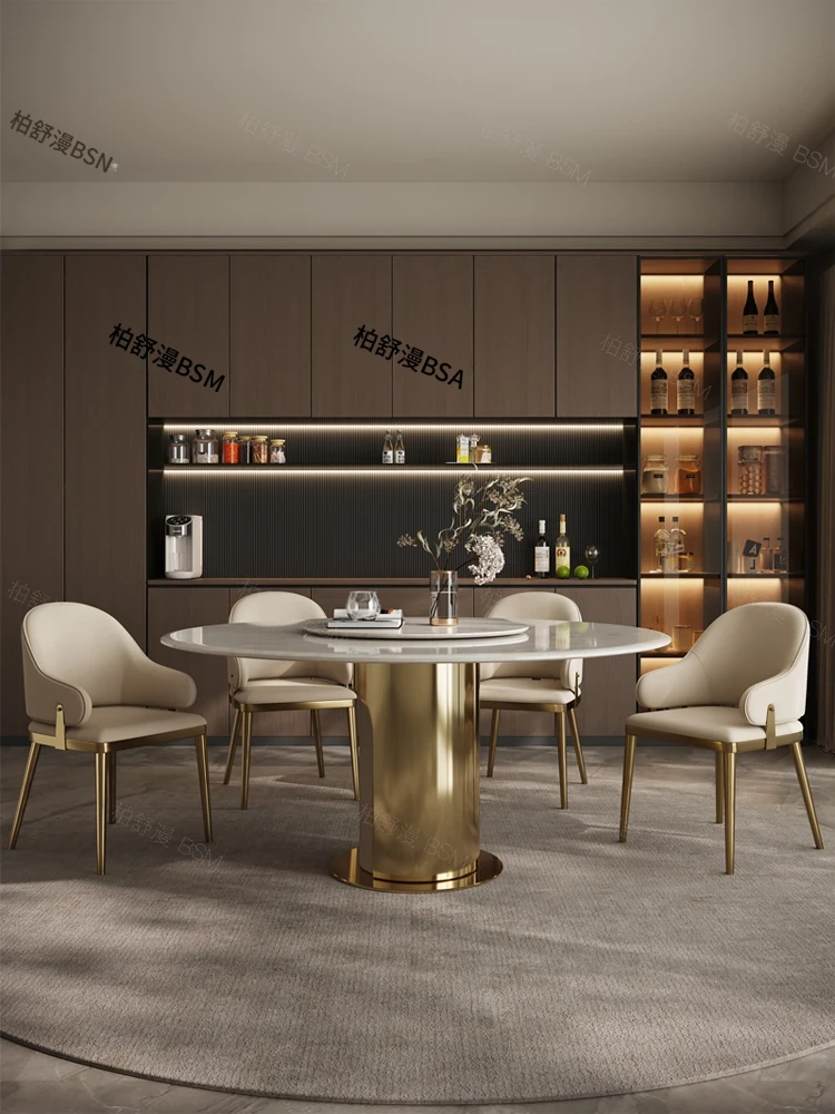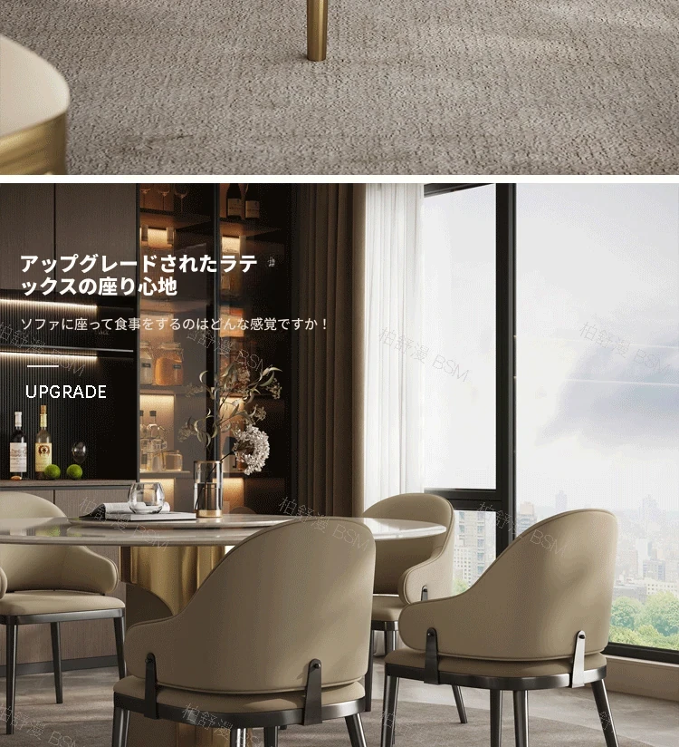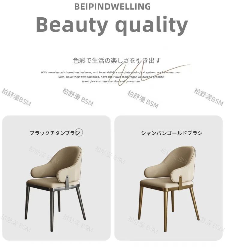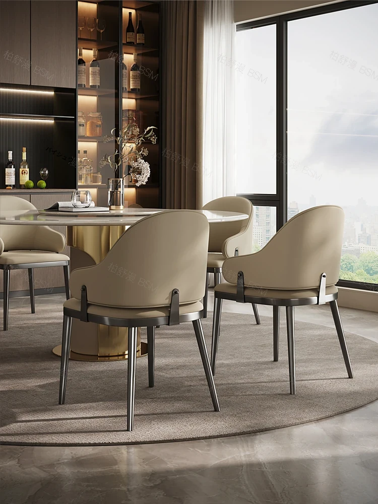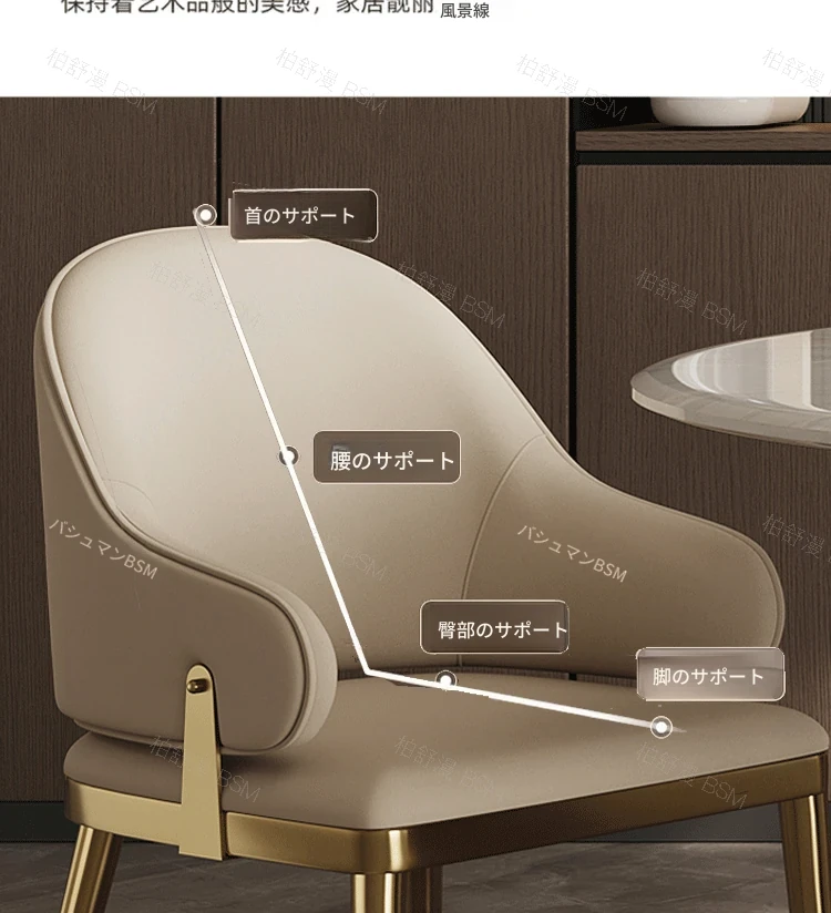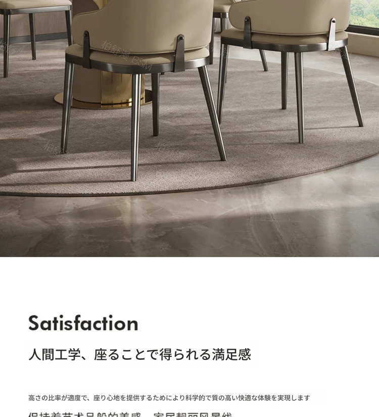 本革製のイタリアンスタイルの高級ダイニングチェア - ヴィラや高級レストランに最適なデザイナーのステンレススチールアームチェア。優雅な雰囲気で、特別なひとときを演出します。