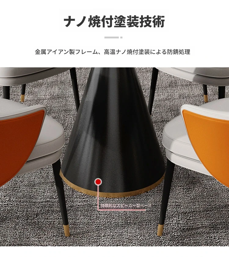 円卓 80cm + オレンジの一人掛けソファ 4脚