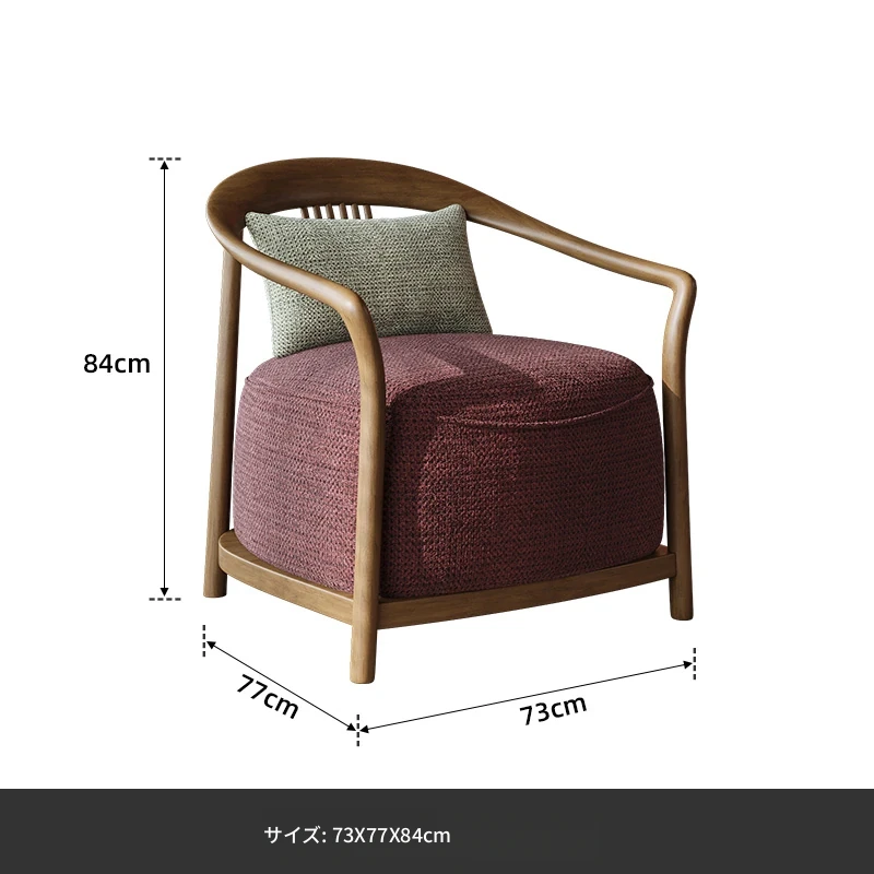 ワインレッドソファチェア【長城ベルベット+無垢材フレーム】