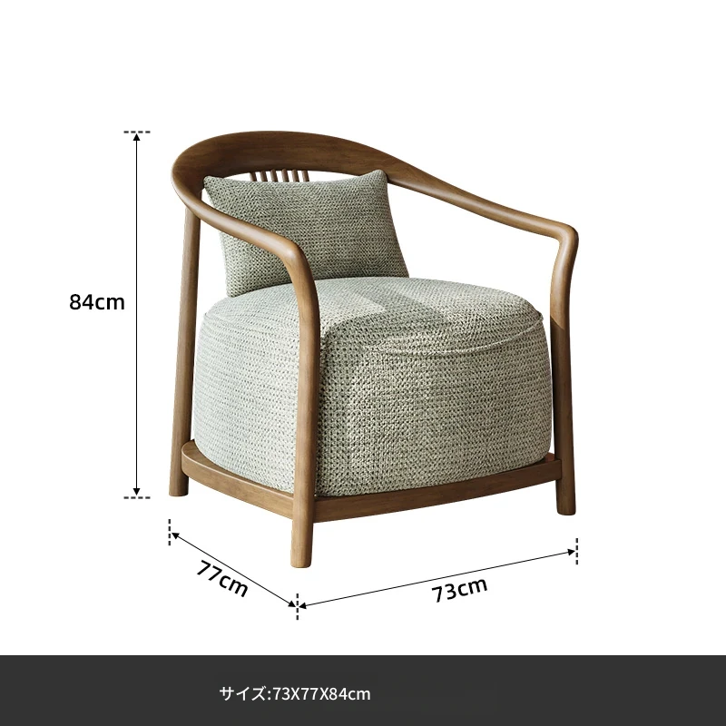 ベージュソファチェア【長城ベルベット+無垢材フレーム】