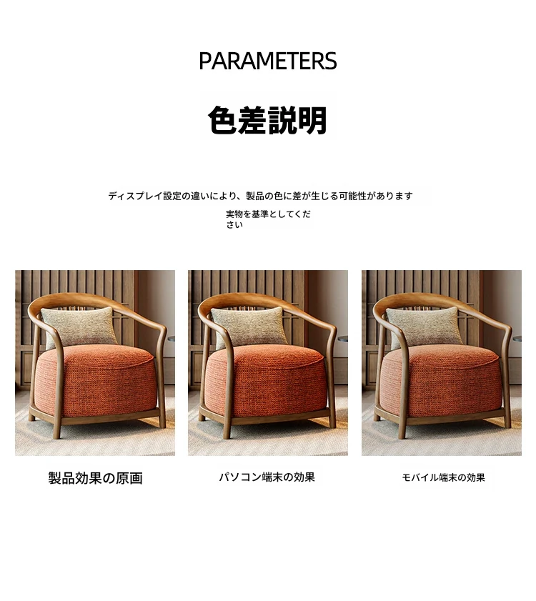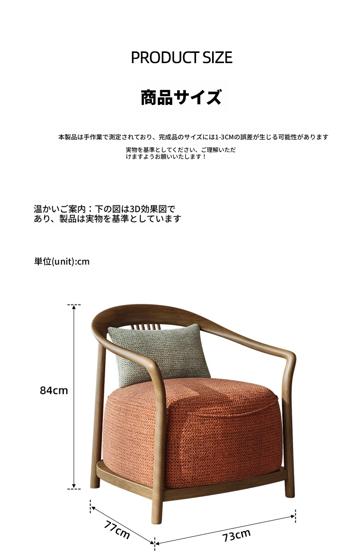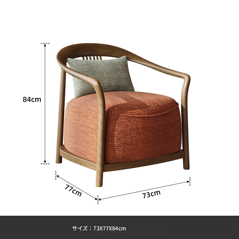 オレンジソファチェア【長城ベルベット+無垢材フレーム】
