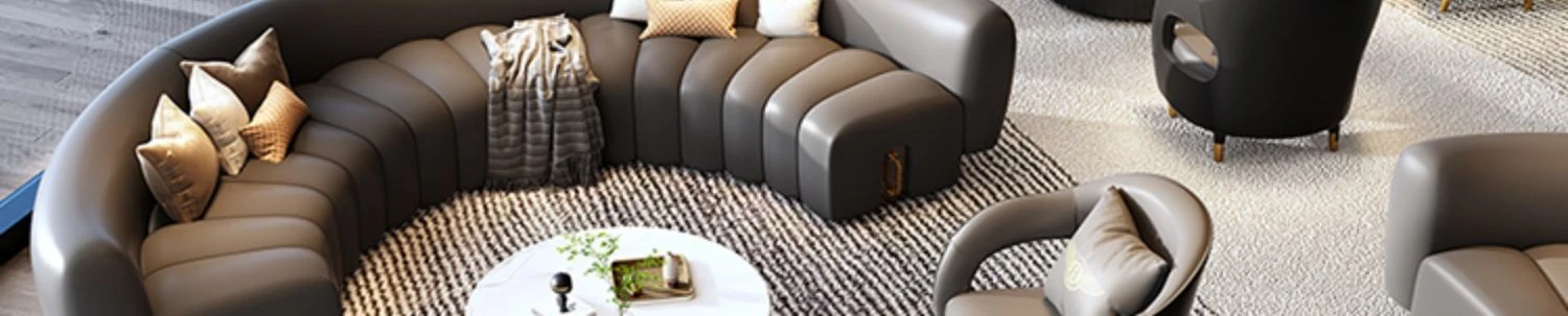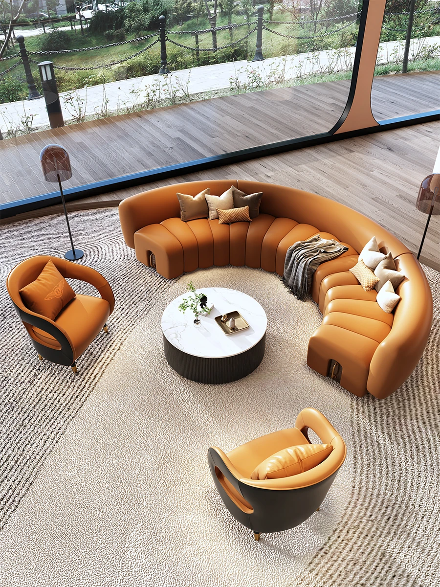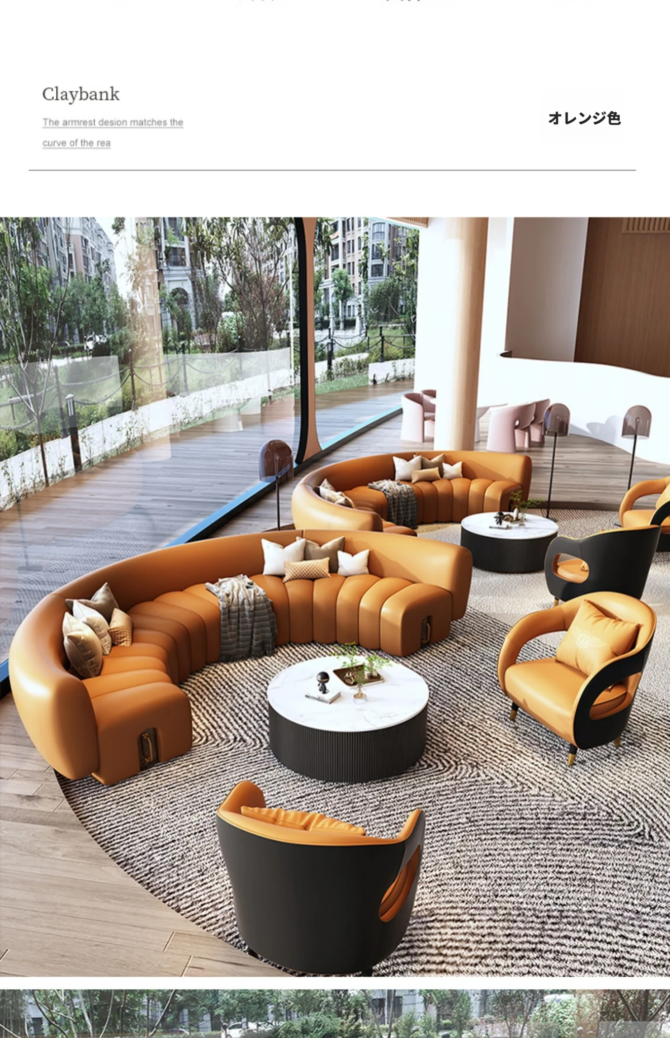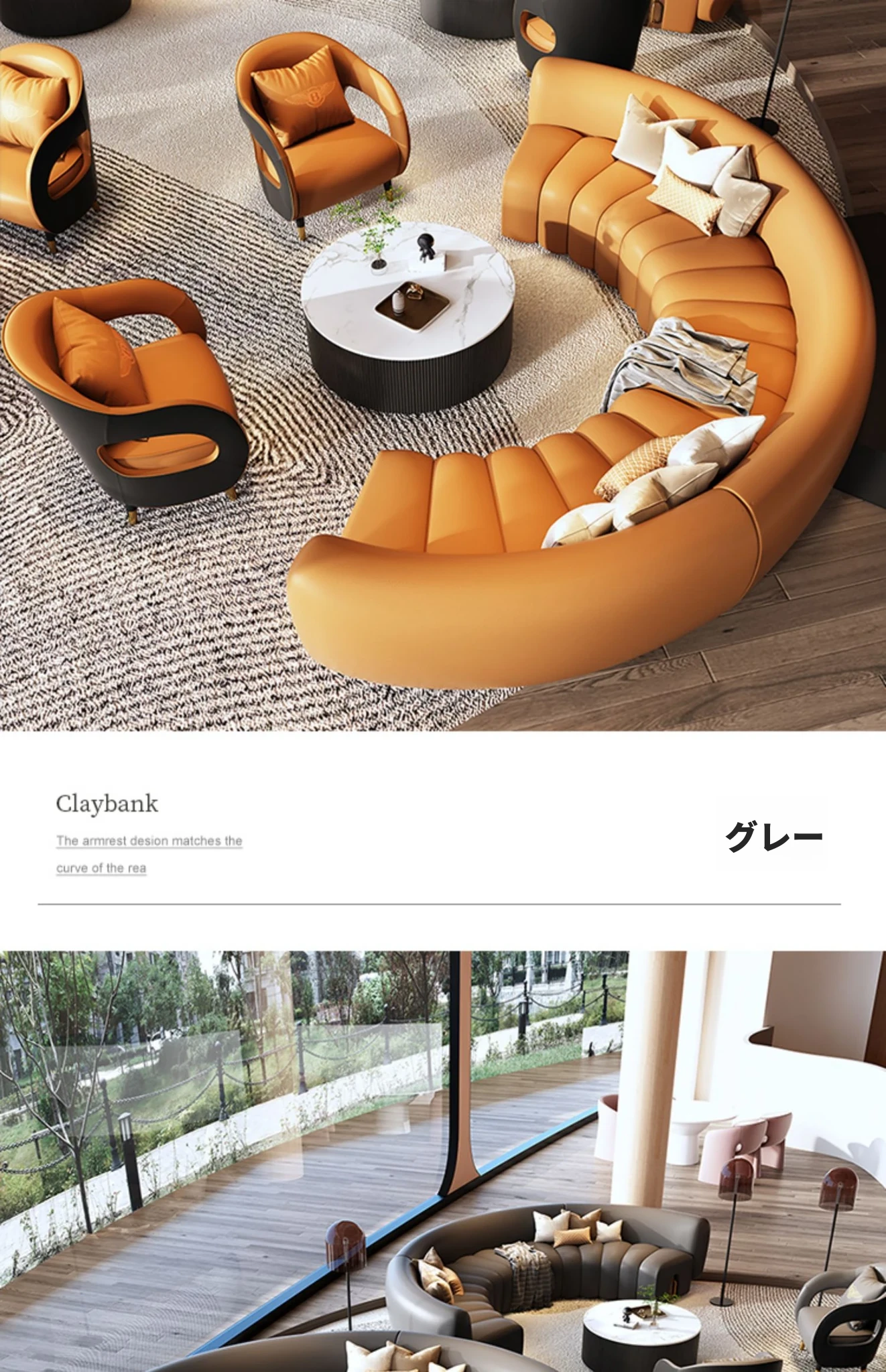 モダンシンプルなコーナーラウンドレザーソファ - ホテルロビー、バー、クラブに最適なハーフサークルのカスタマイズ可能な受付デスク&チェアセット!おしゃれで快適な空間を演出します。
