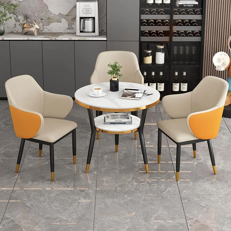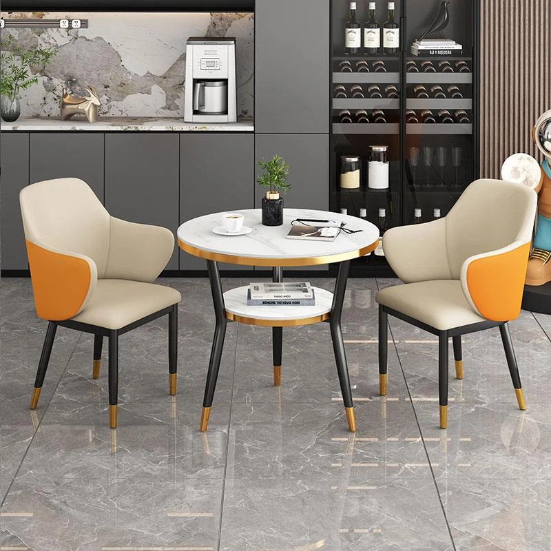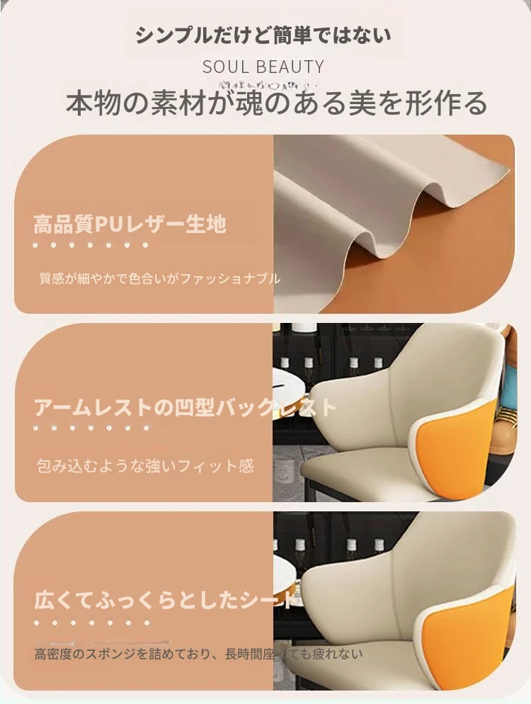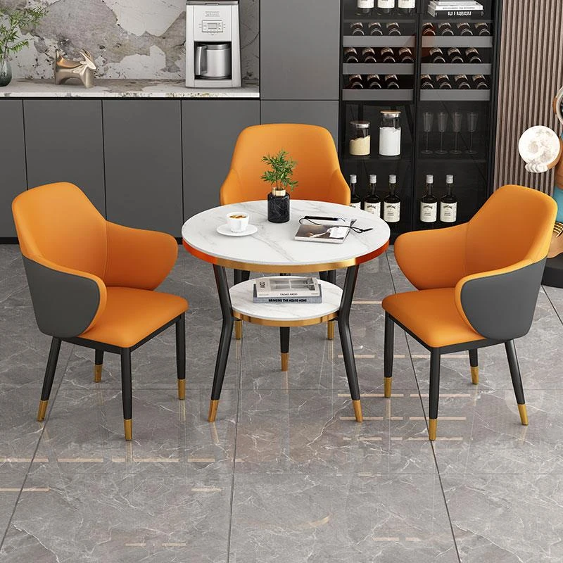 オレンジ色 テーブル1台 椅子2脚 60COM 岩板面
