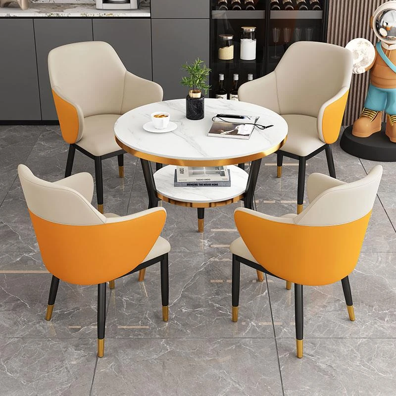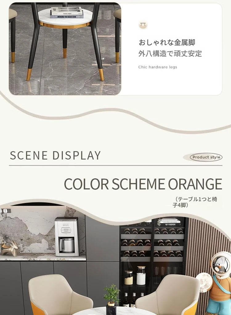 オレンジ色 テーブル1台 椅子4脚 70COM 擬石目面