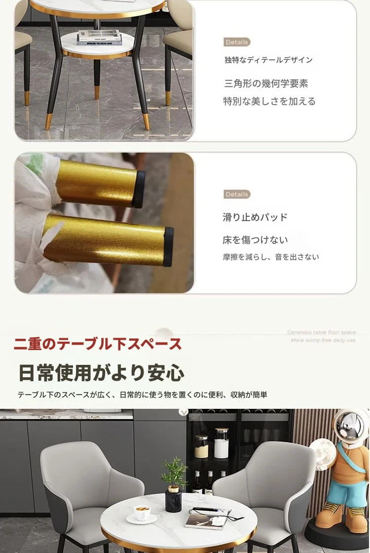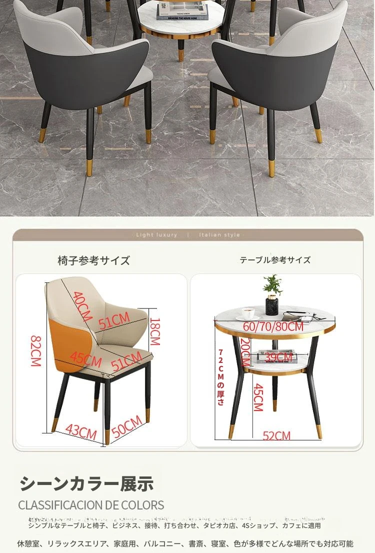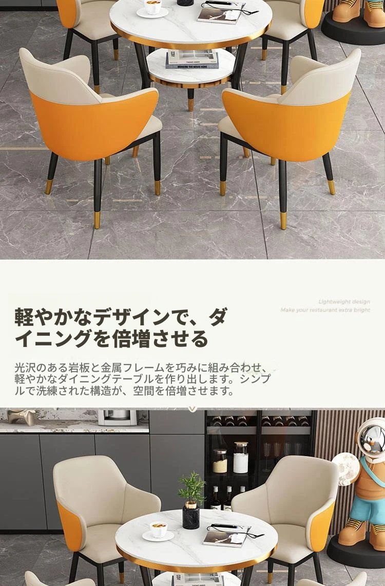 浅灰色 テーブル1台 椅子4脚 70COM 岩板面