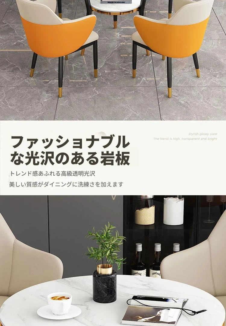 オレンジレッド テーブル1台 椅子4脚 80COM 岩板面