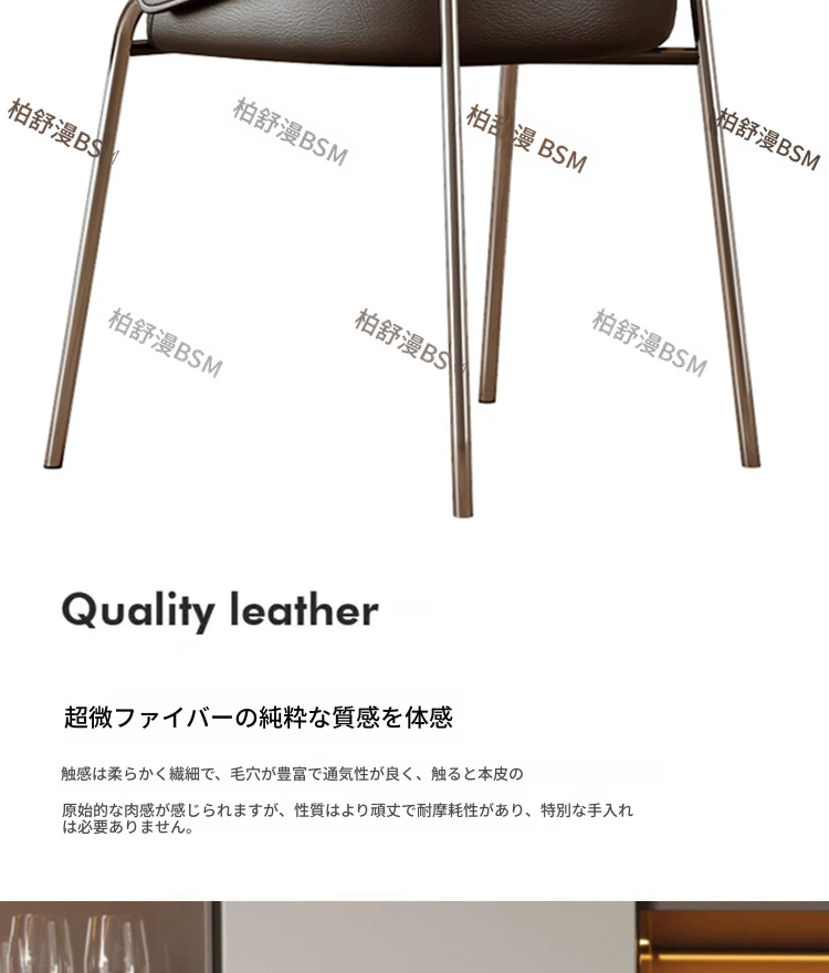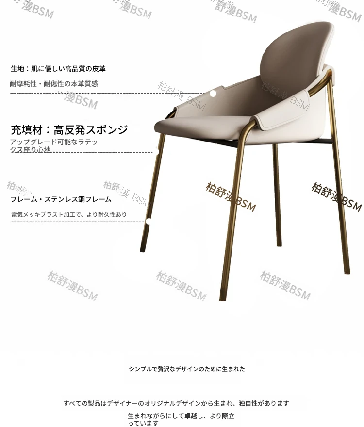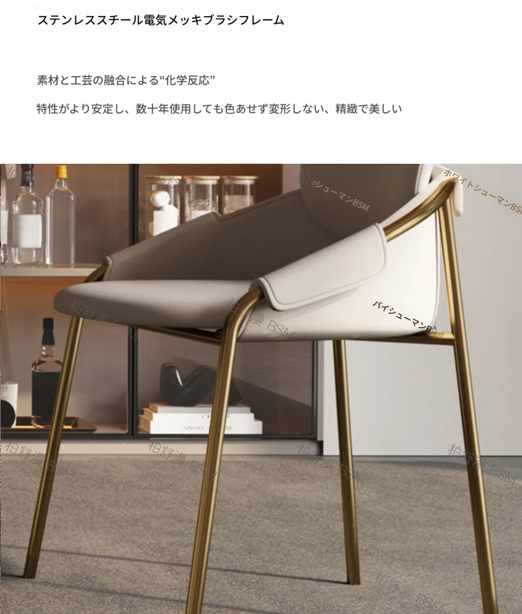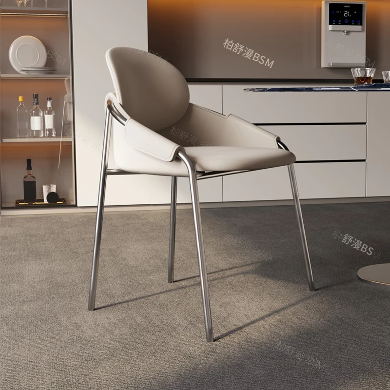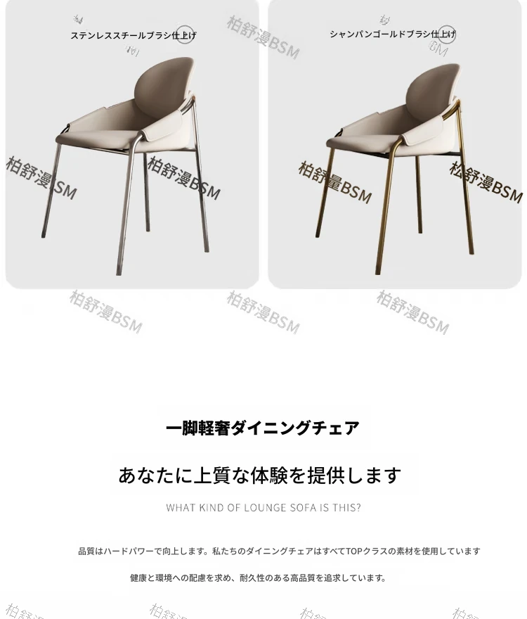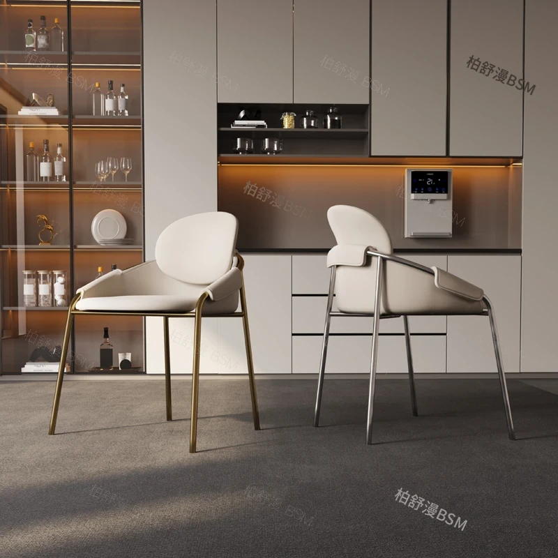 本革製モダンシンプルレストランチェア|背もたれ付き|ホテル・アイランドカウンター用|ステンレス製・ラグジュアリー別荘デザイン|オシャレで快適なひとときを演出する特別な椅子!