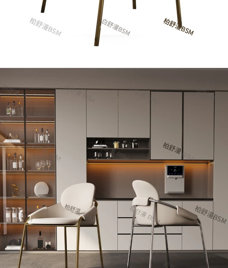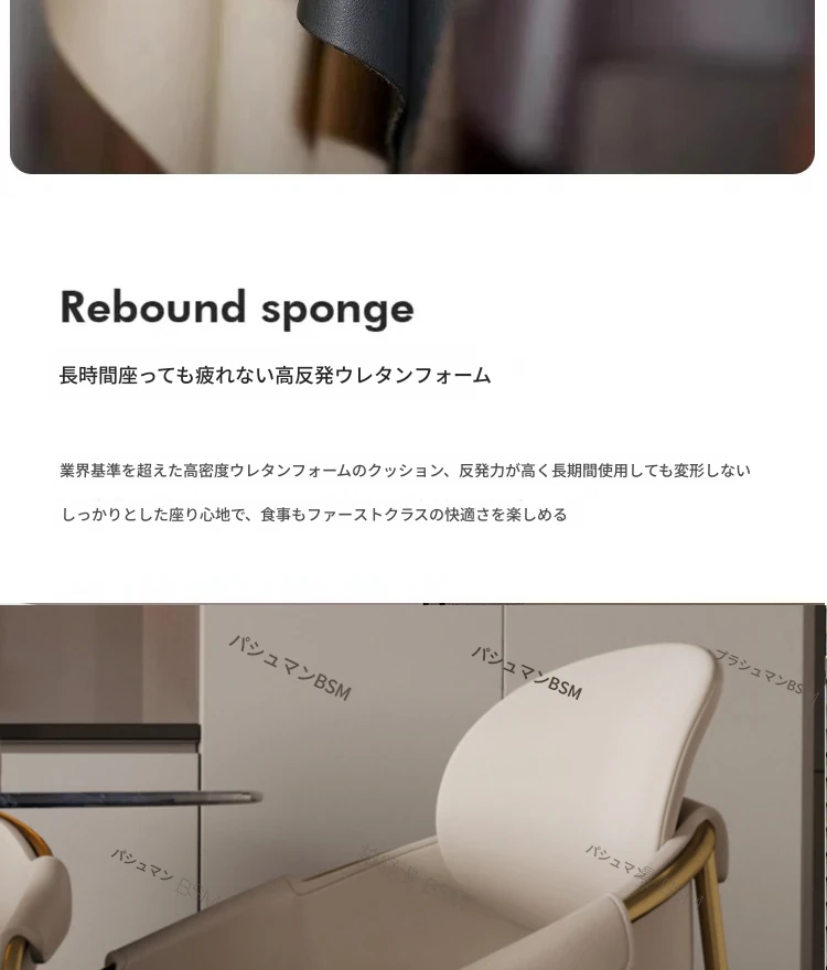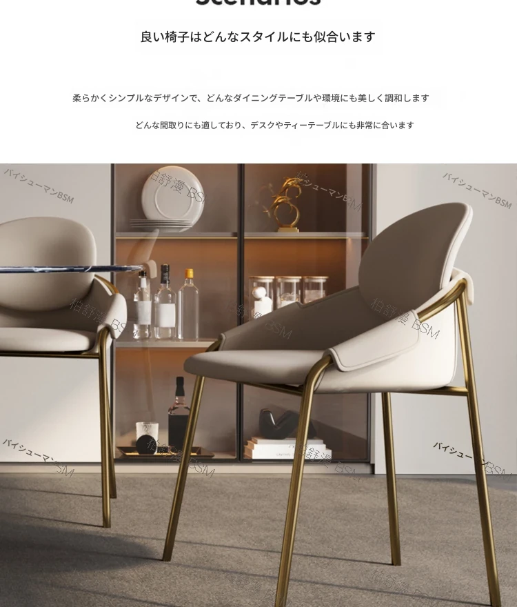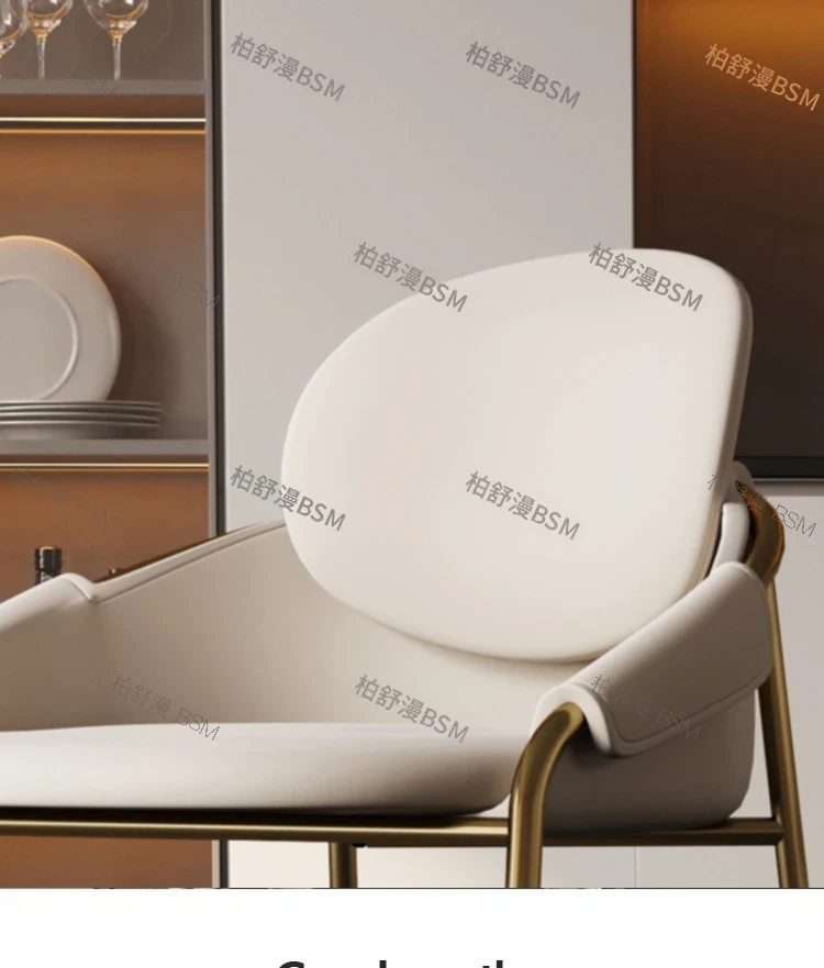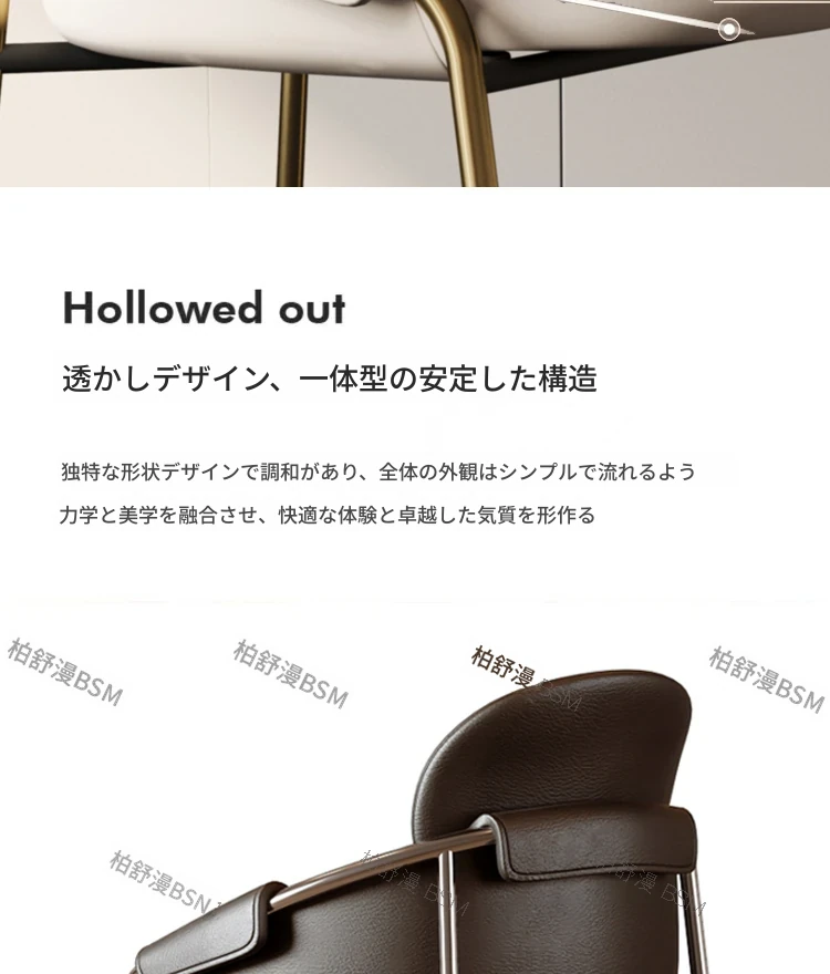 本革製モダンシンプルレストランチェア|背もたれ付き|ホテル・アイランドカウンター用|ステンレス製・ラグジュアリー別荘デザイン|オシャレで快適なひとときを演出する特別な椅子!