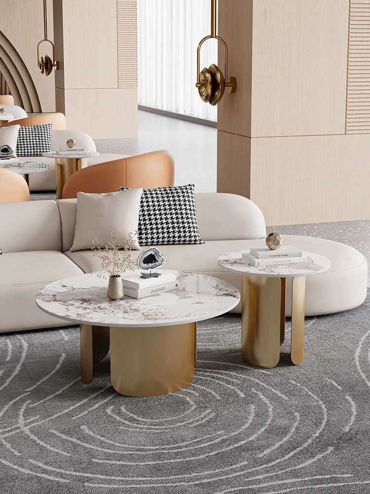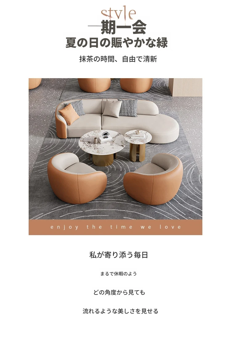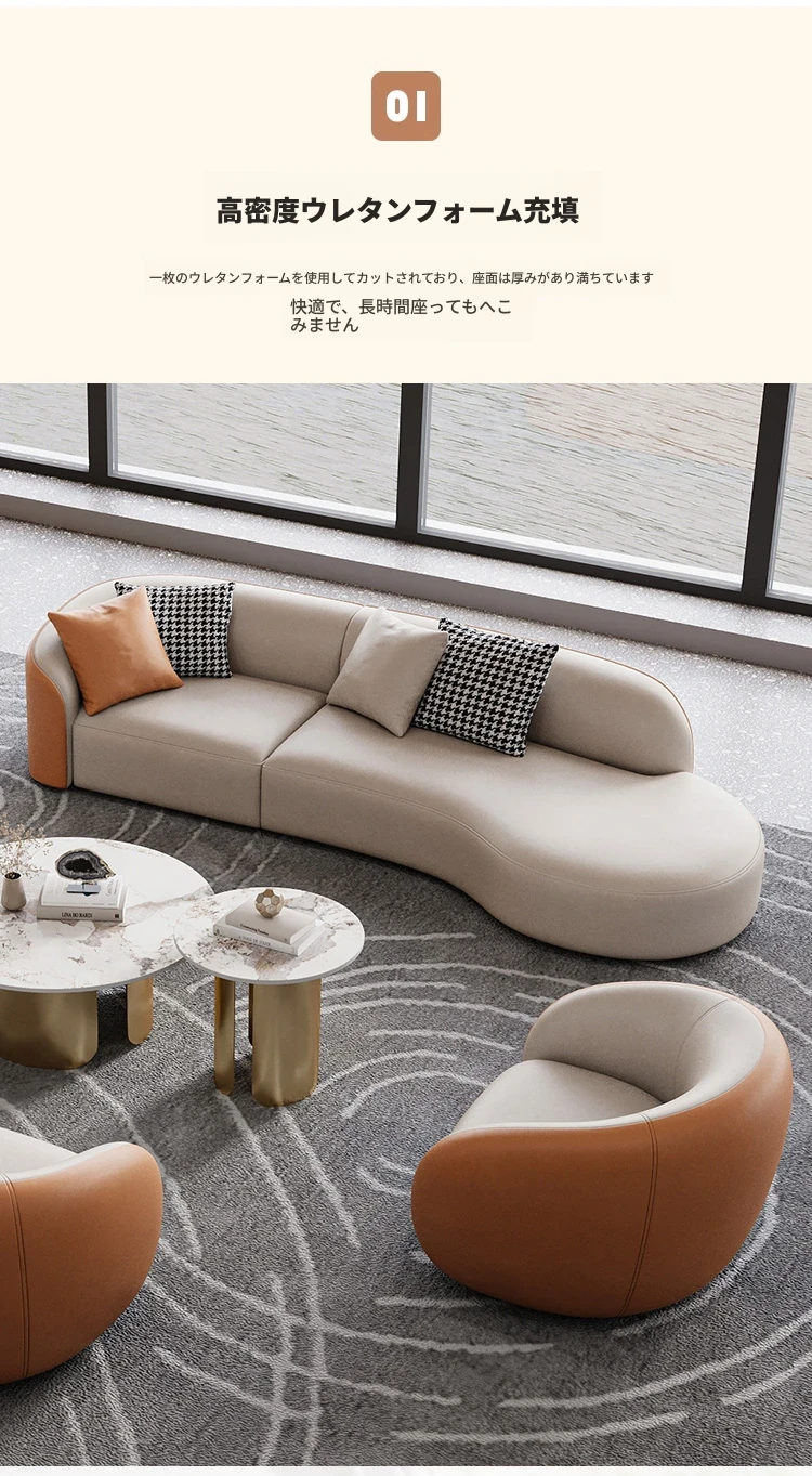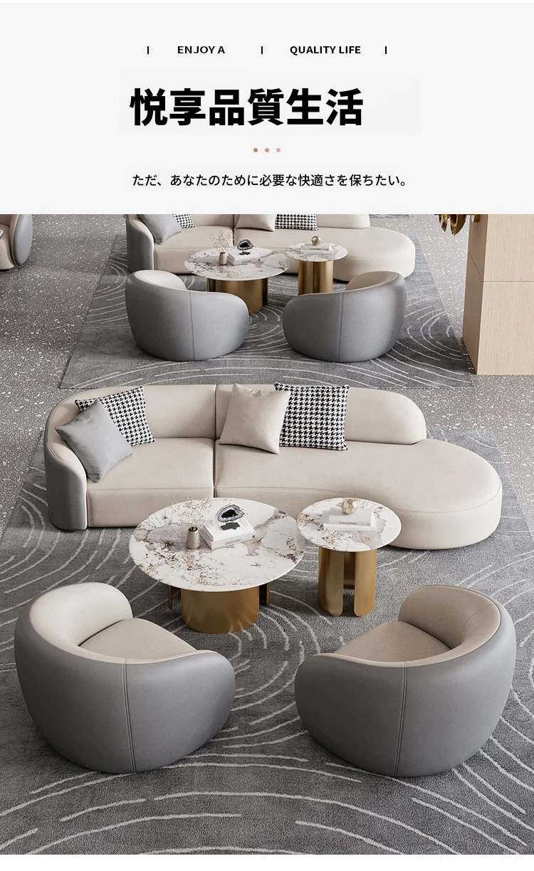 モダンミニマリストのホテルロビー用ラグジュアリーソファ&テーブルセット - 美容院の休憩エリアやVIPルームに最適なスタイリッシュな接客スペースをご提供します!