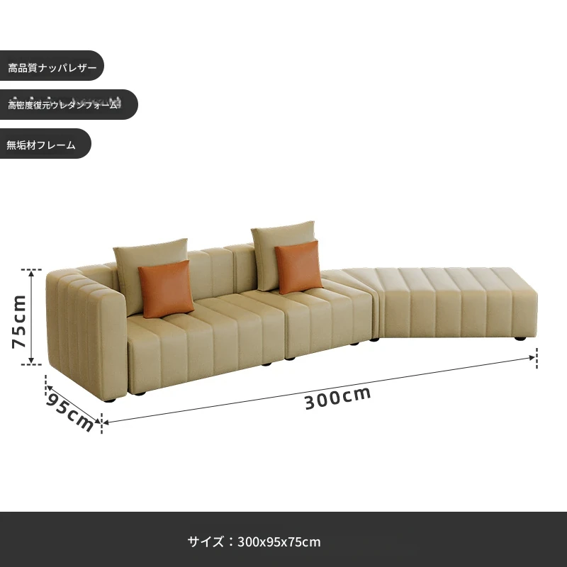 3.4メートルのアイボリーソファ(ナッパレザー)