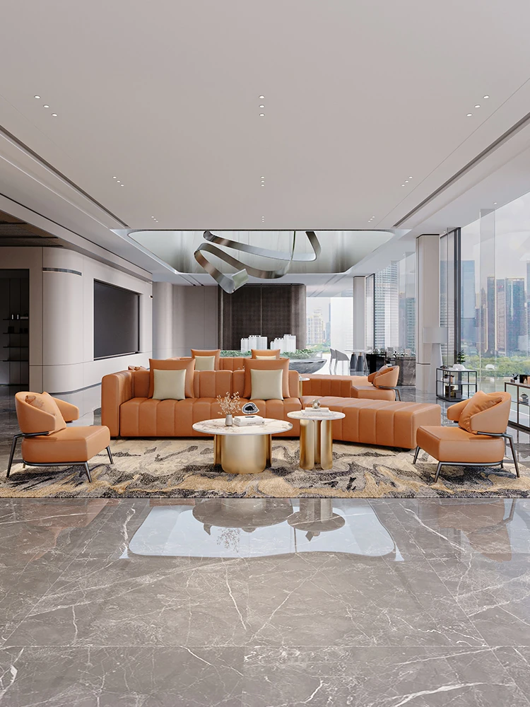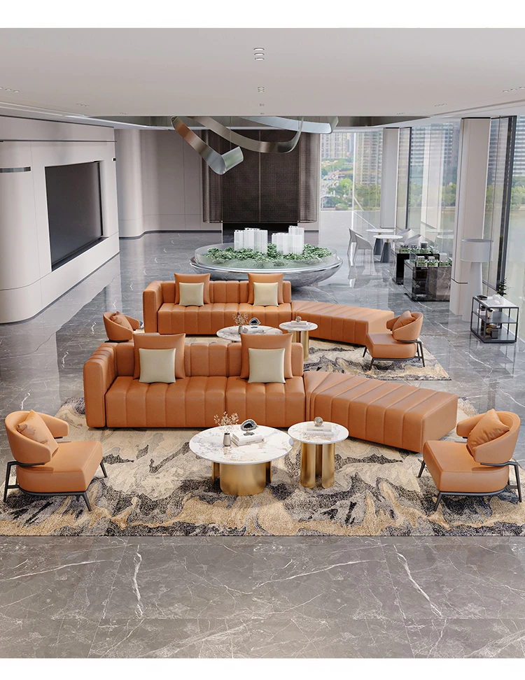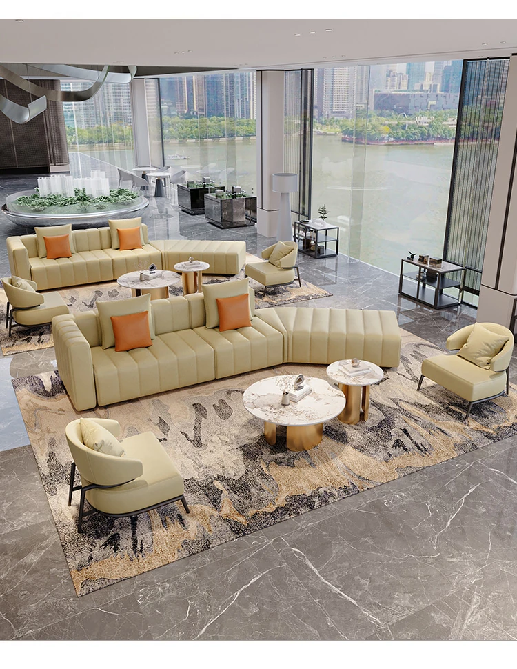 モダンでシンプルなデザインのラグジュアリーソファ!ホテルのロビーやビジネス接待に最適な異型コーナーソファ。洗練された空間を演出し、商談や会議をより快適に。おしゃれな販売所にもぴったり!
