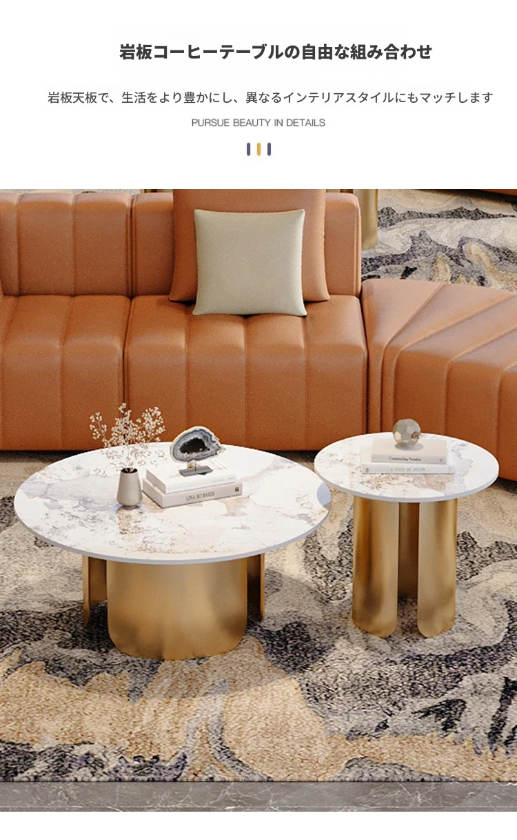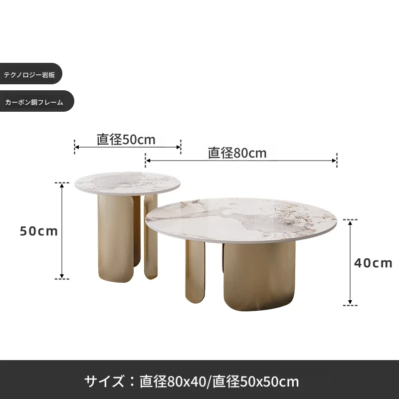 80+50パンドラコーヒーテーブルセット(ゴールドフレーム)