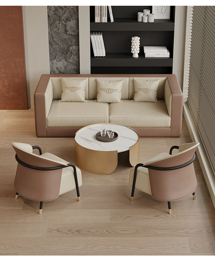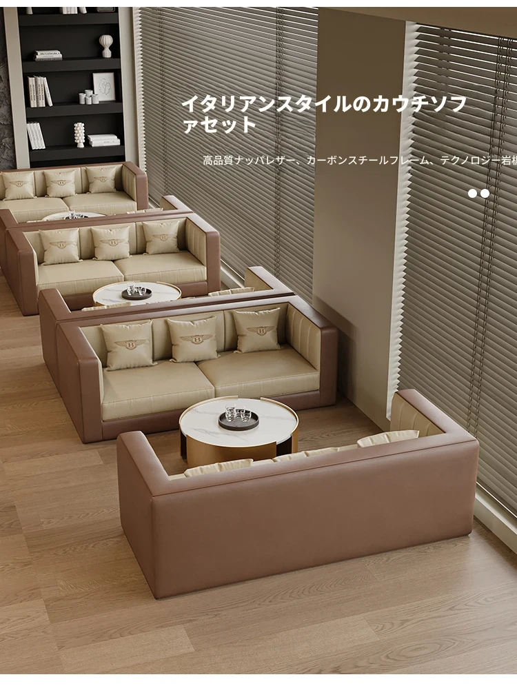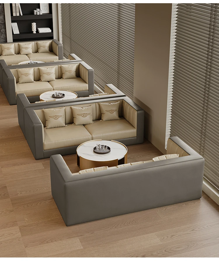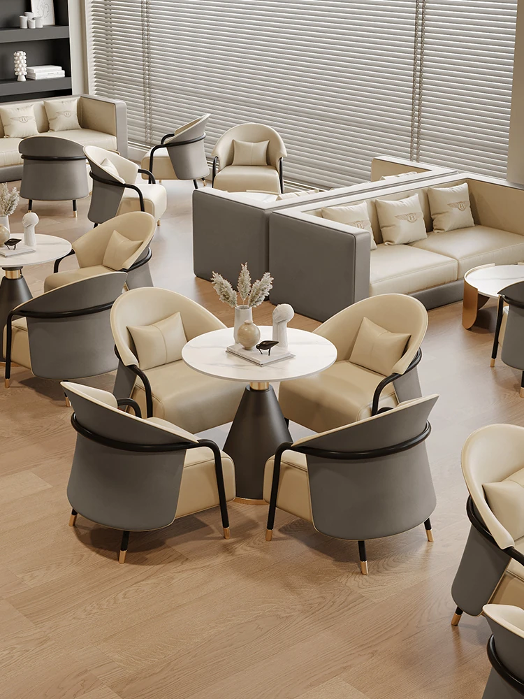 シンプルでモダンなデザインの販売センター・ホテルロビー・オフィス受付用ソファセット。リラックスできる休憩スペースや打ち合わせに最適なテーブルと椅子の組み合わせで、洗練された空間を演出します。