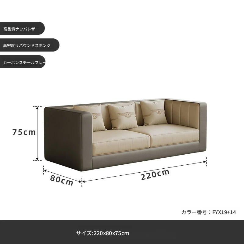 グレーのソファ220CM【ナッパレザー】