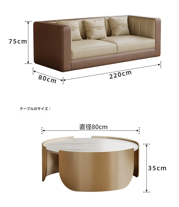 220cm+1人用*2+スラブコーヒーテーブル【ブラウン】