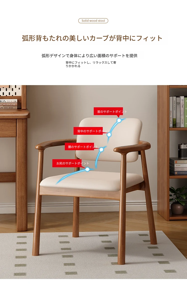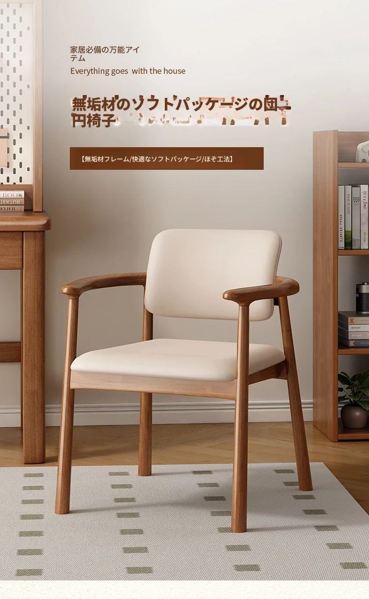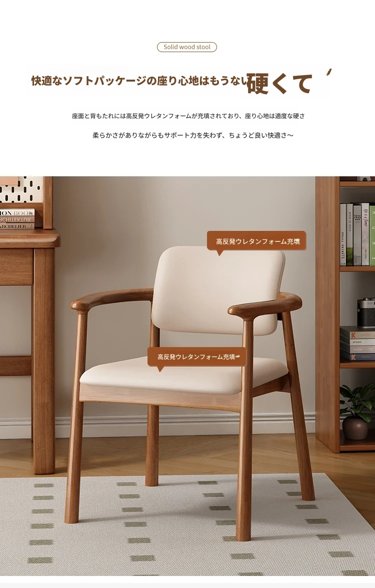 モダンシンプルな無垢材のダイニングチェア 北欧風ティーテーブルチェア リラックス会議用ソフトバックチェア 書斎用チェア レストラン用アームチェアで、スタイリッシュな空間を演出!快適さとデザイン性を兼ね備えた一品です。