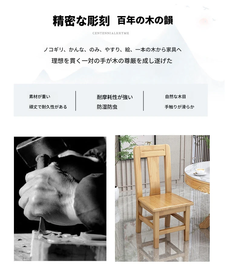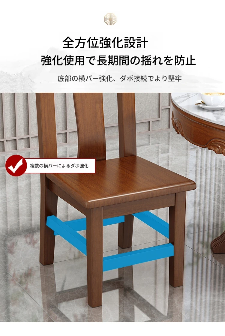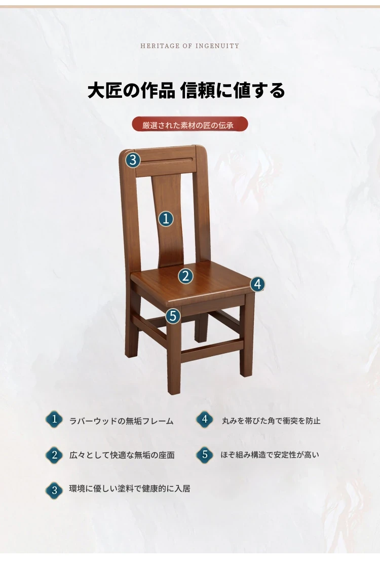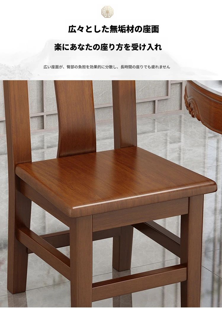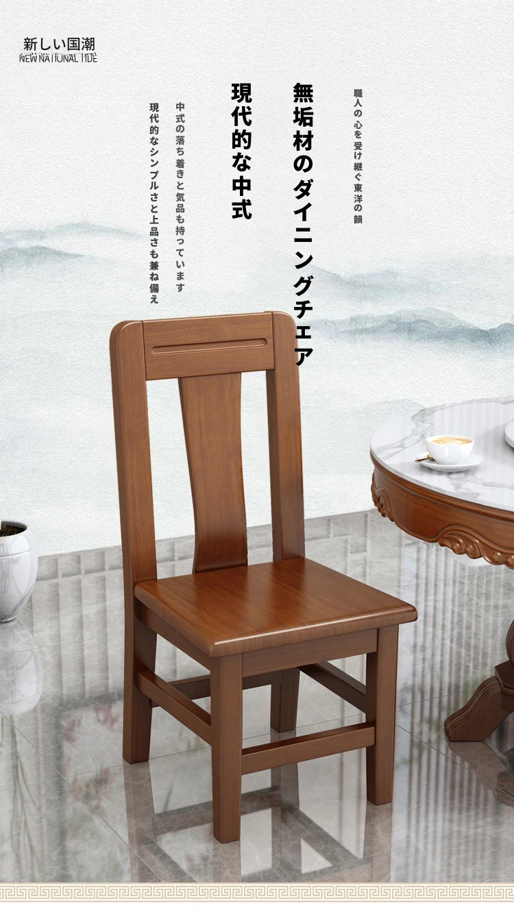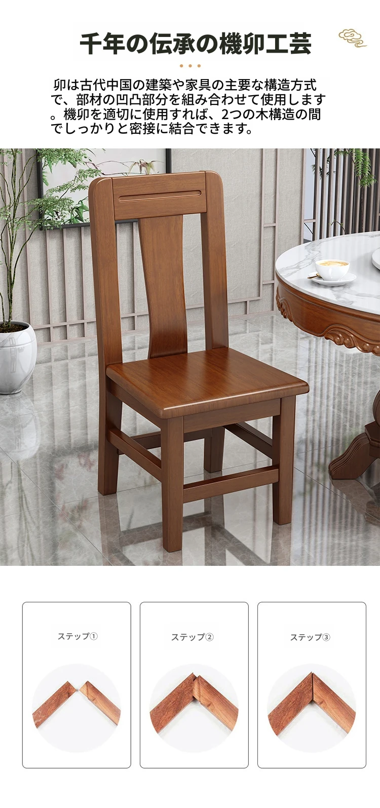 組み立て不要の無垢材ダイニングチェア|中華スタイルの厚みのある榫卯構造|レストランや家庭に最適な背もたれ付き|優雅な食卓を演出する高品質チェア
