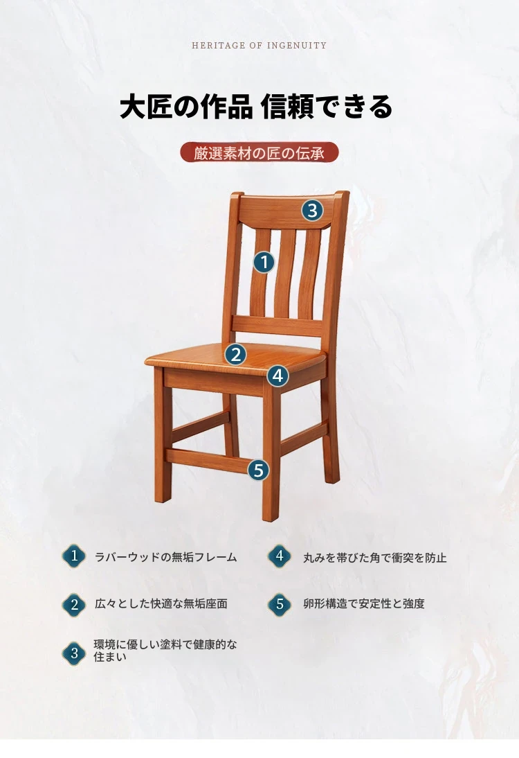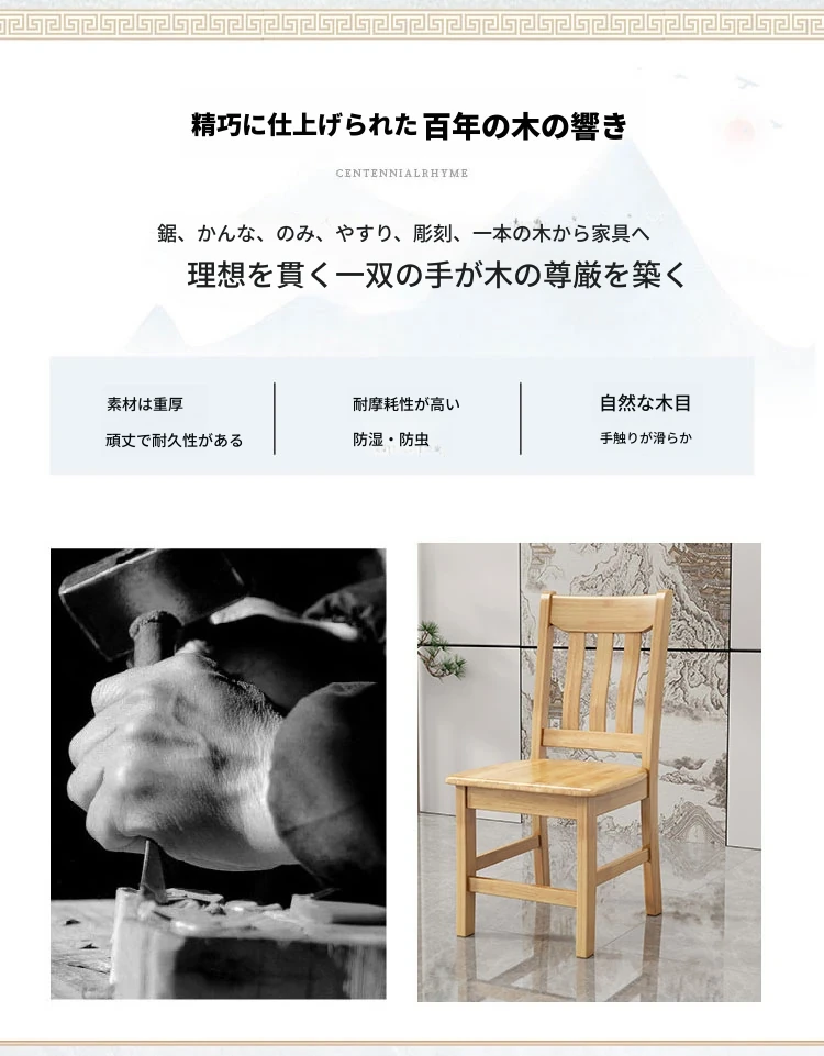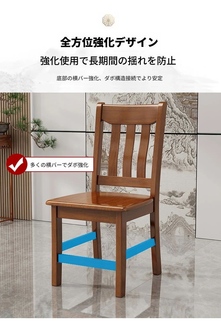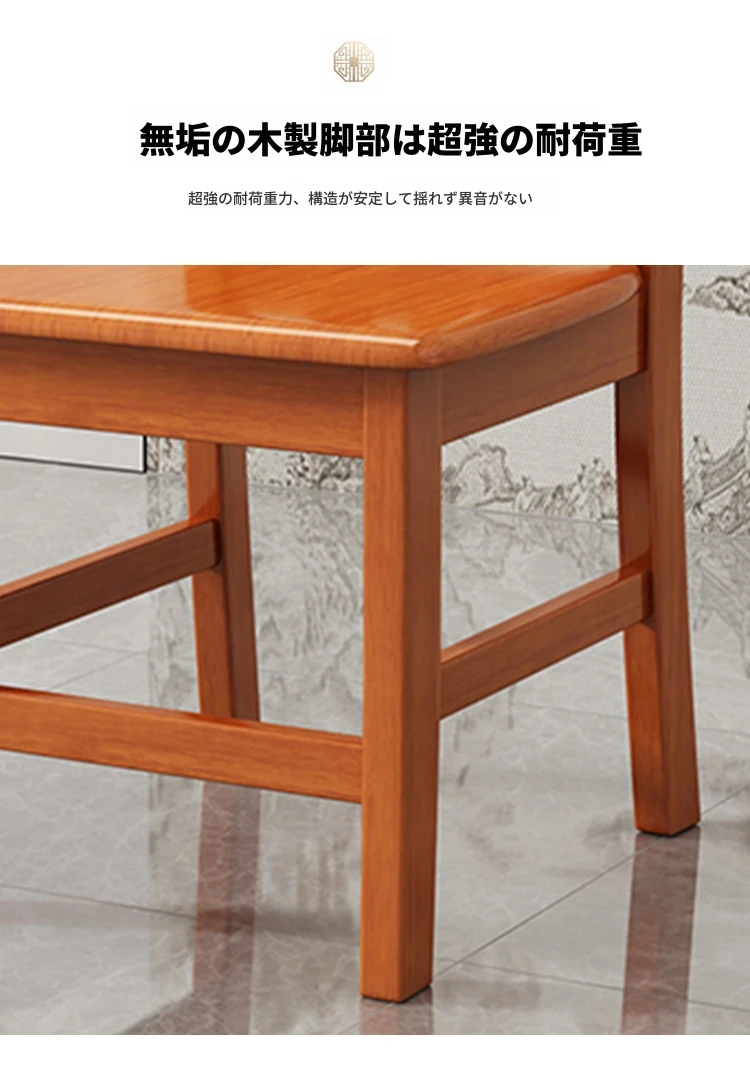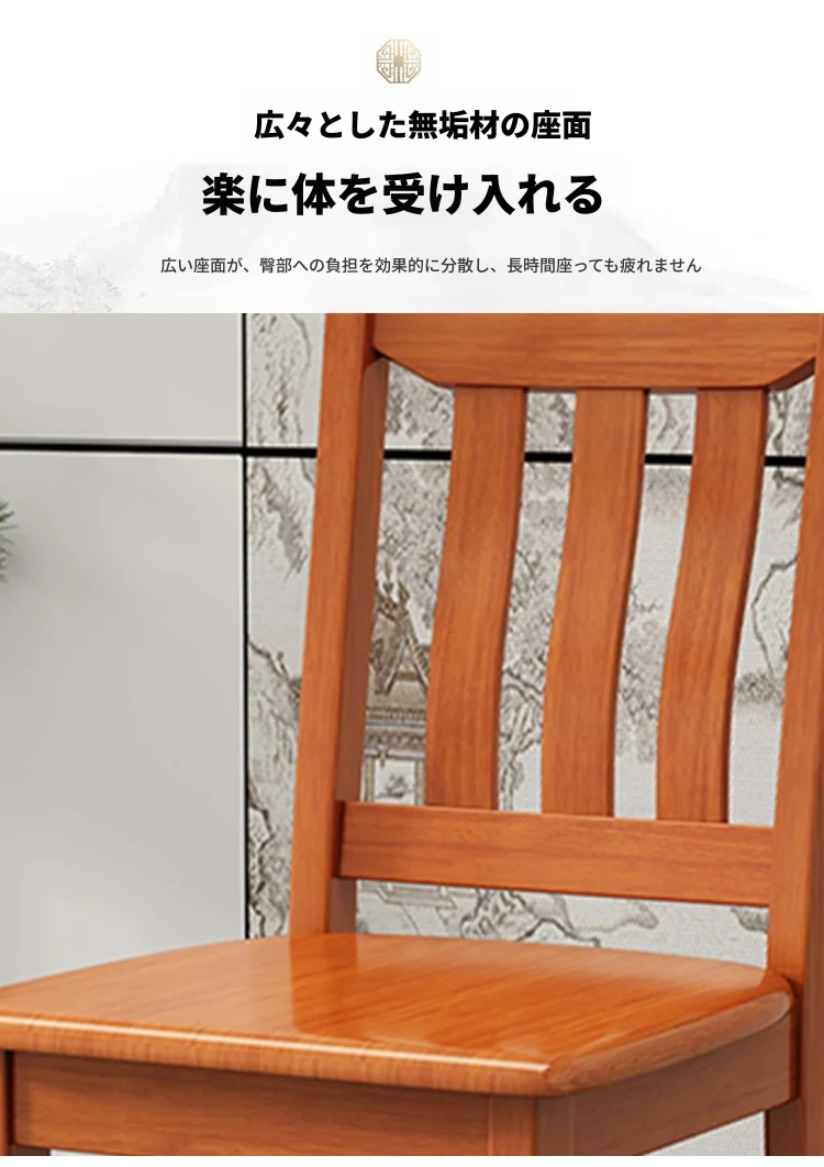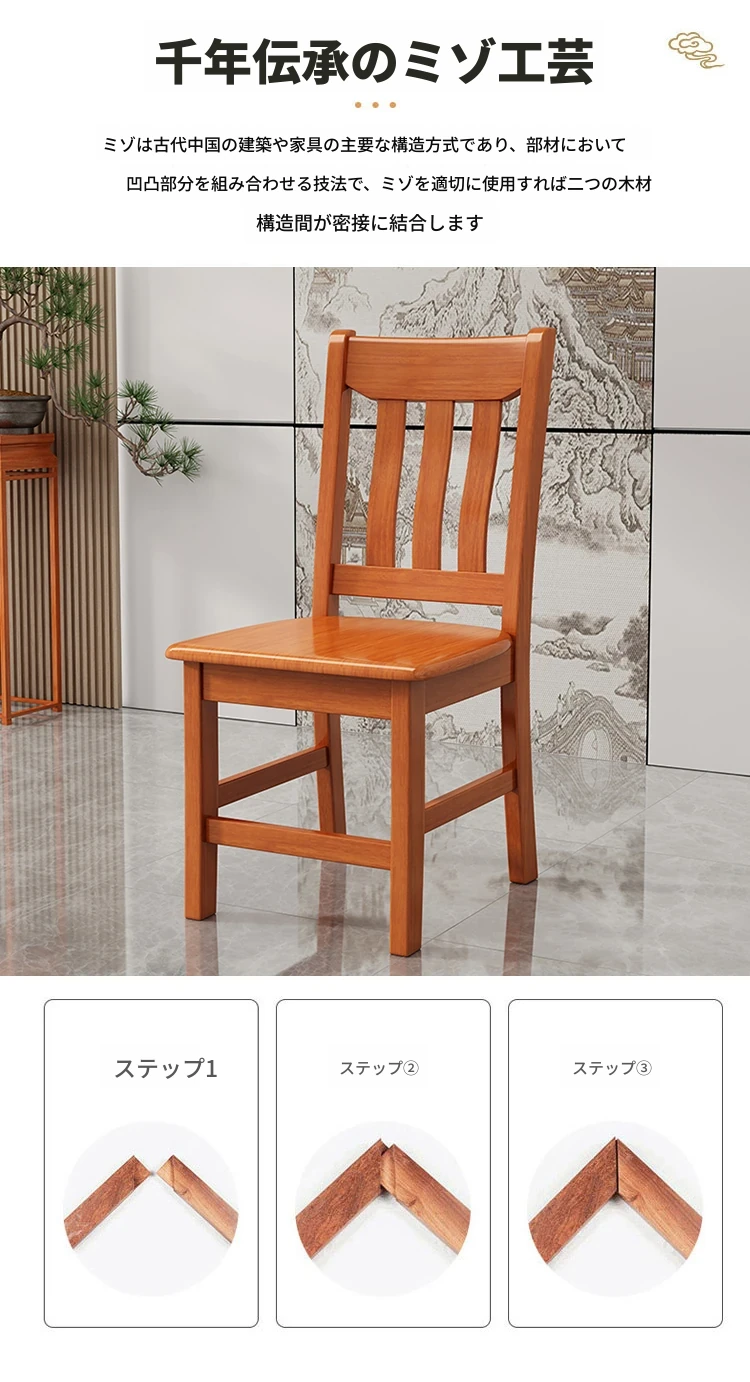 組み立て不要の無垢材ダイニングチェア|中華スタイルの厚みのある榫卯構造|レストランや家庭に最適な背もたれ付き|優雅な食卓を演出する高品質チェア
