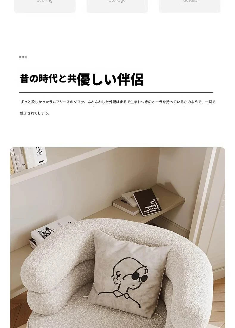 北欧スタイルのシンプルでモダンなラムファー一人掛けソファ|デザイナーズ軽奢リビング・バルコニー向け|小スペースにぴったりな白色のリラックスチェア