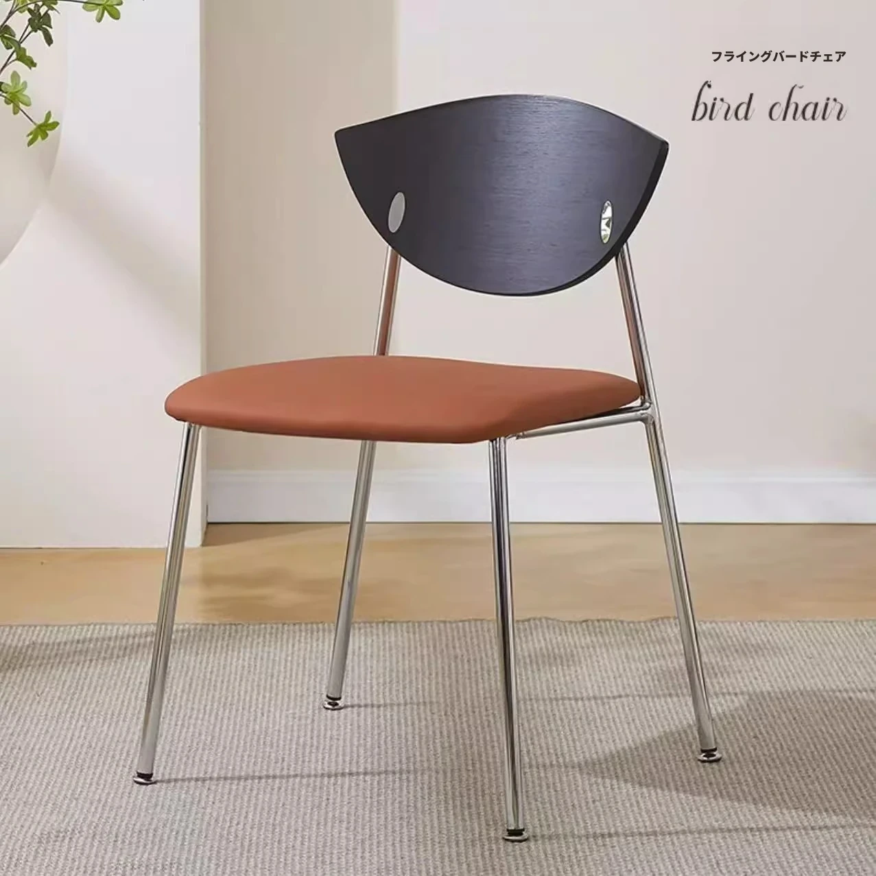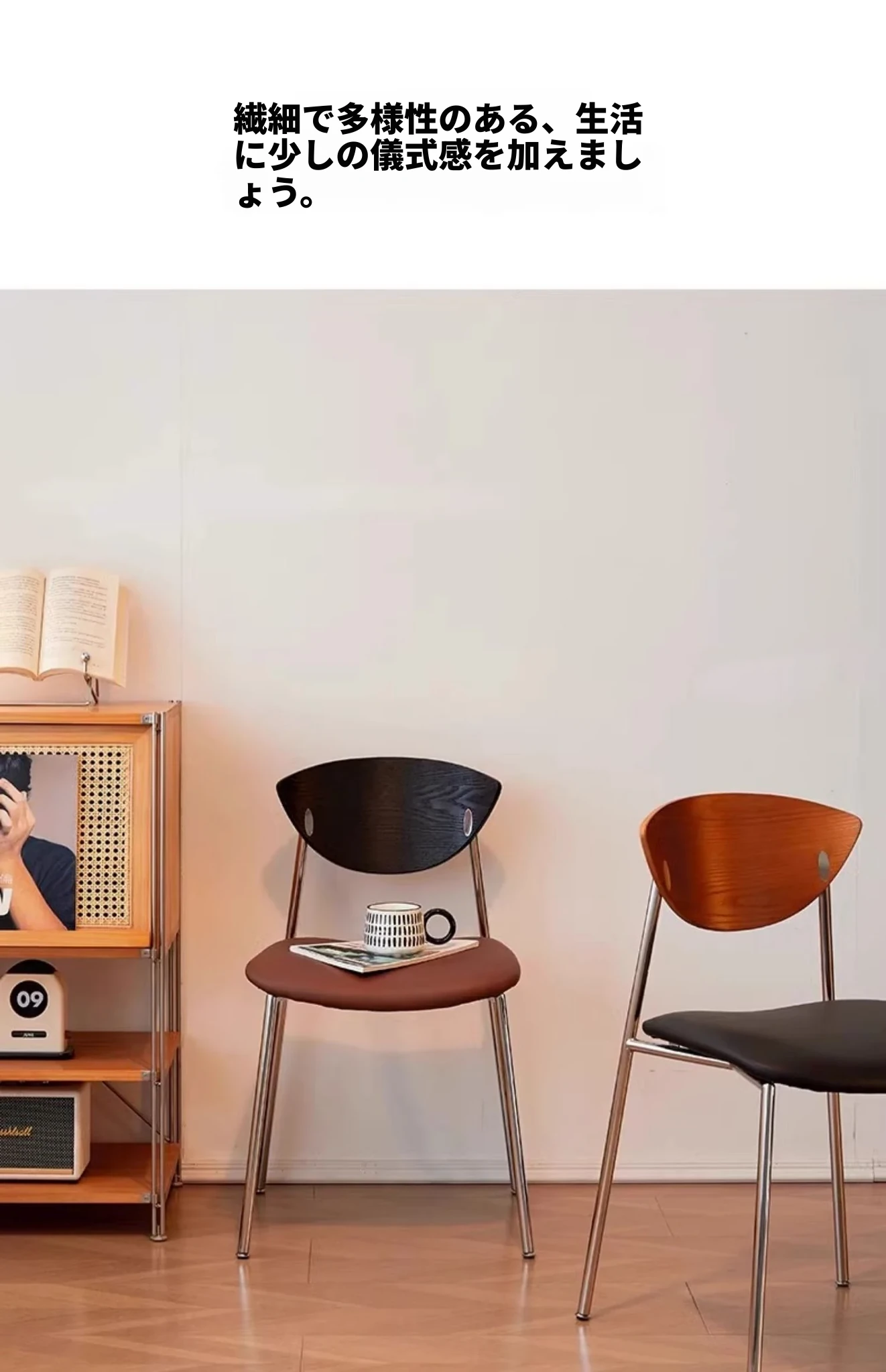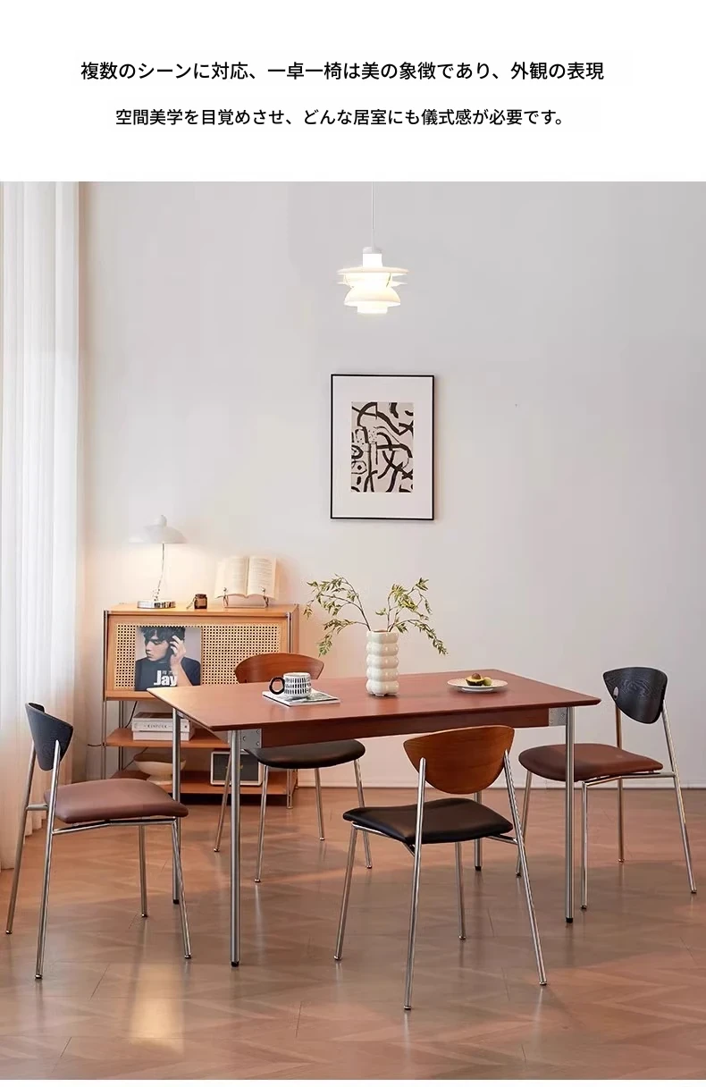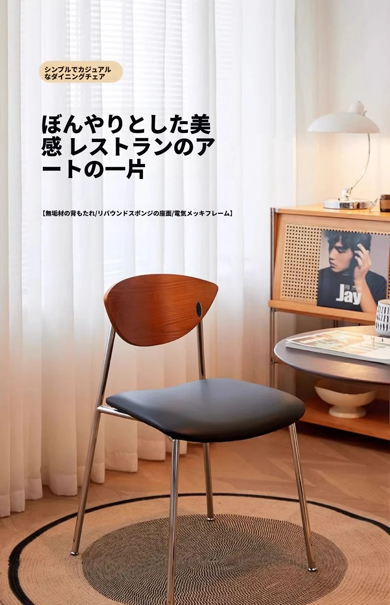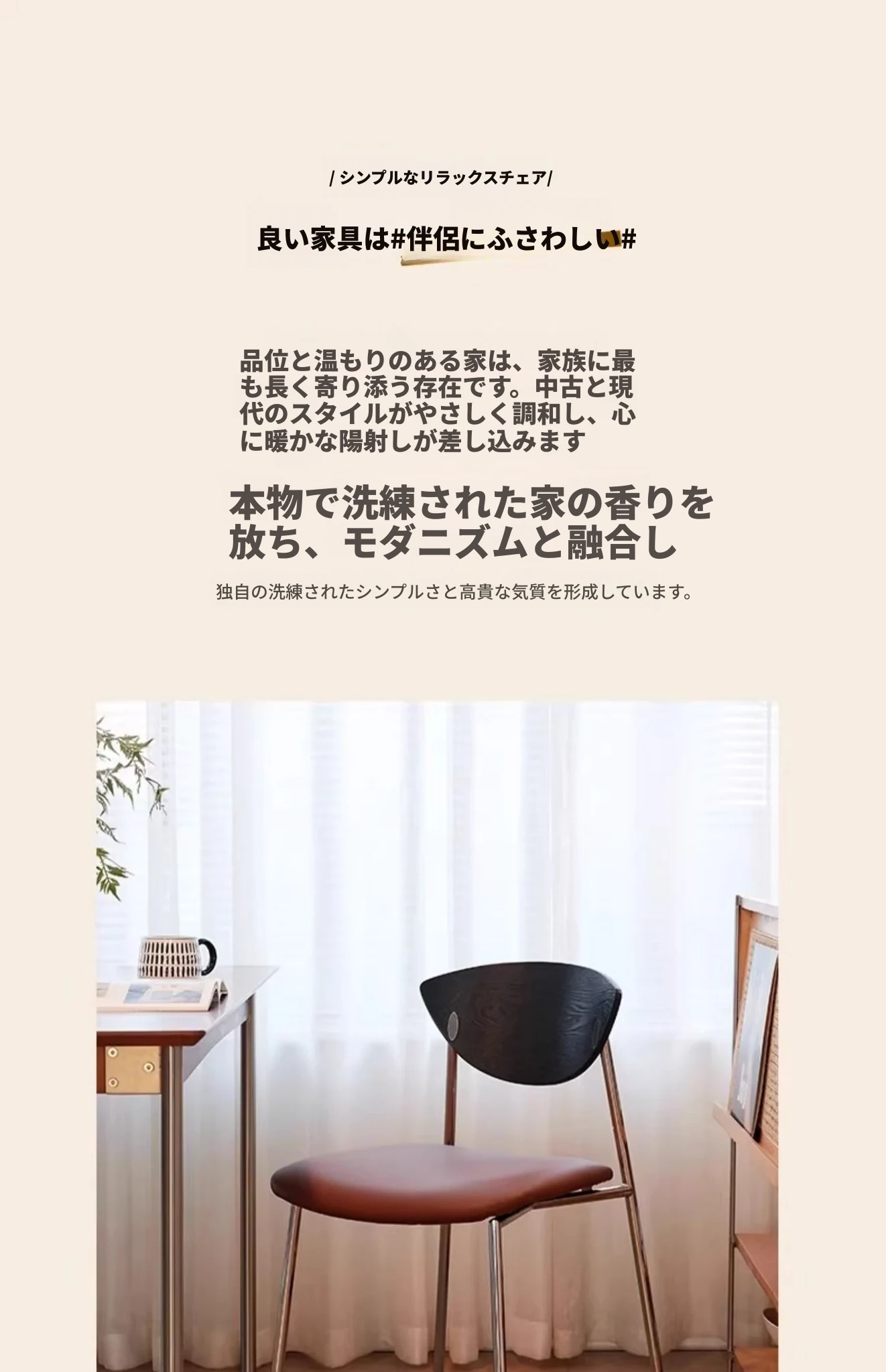 北欧スタイルの無垢材デザイナー・ダイニングチェア|シンプルでレトロな鉄製デスクチェア|おしゃれなリビングやダイニングに最適!快適な背もたれ付きで、食事や読書にぴったり!
