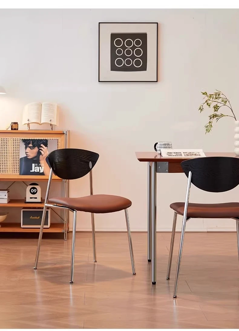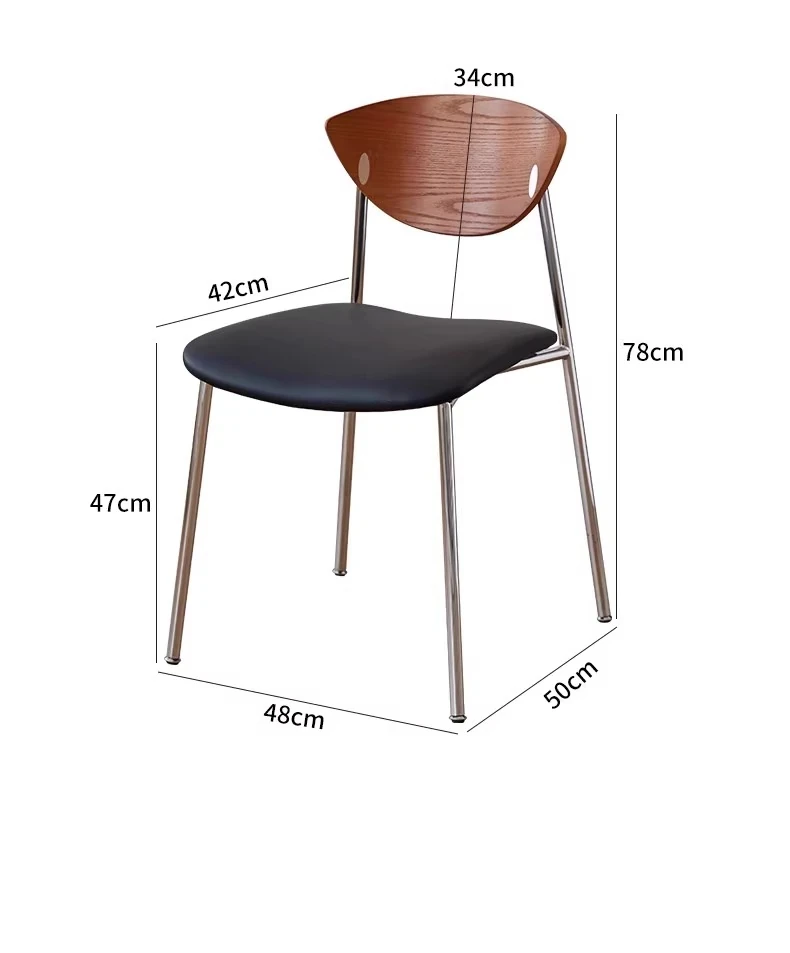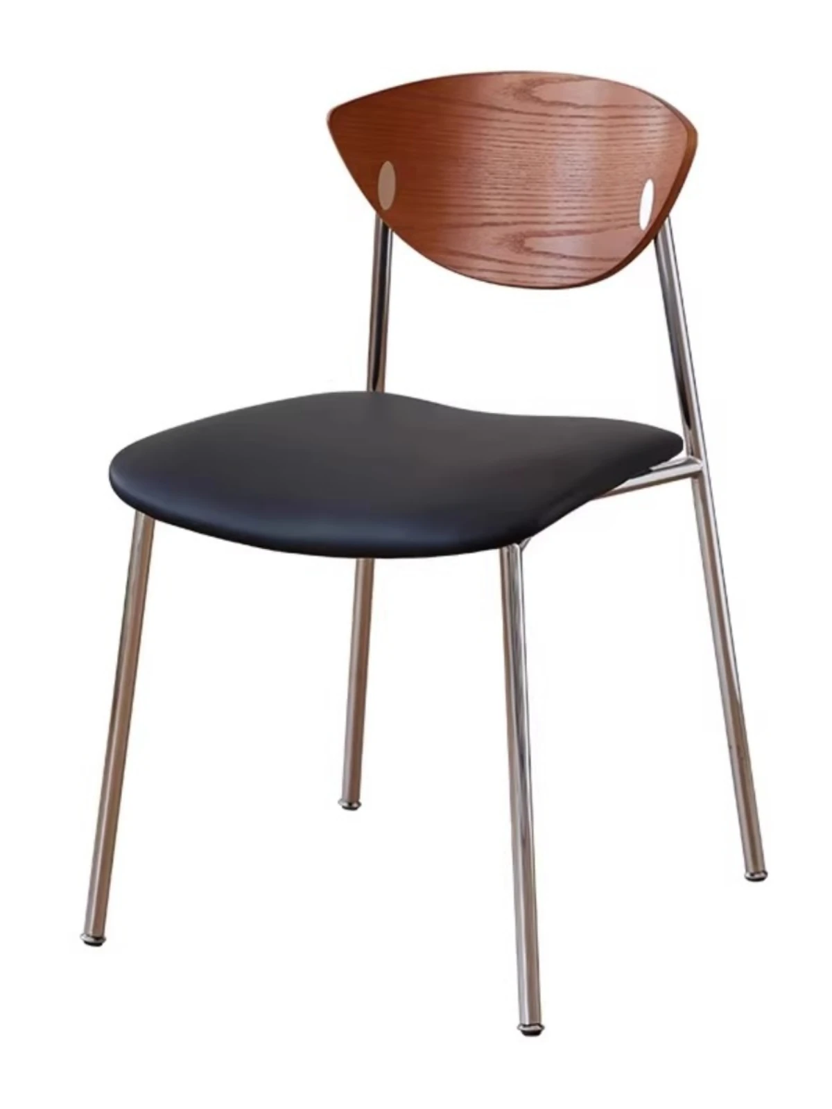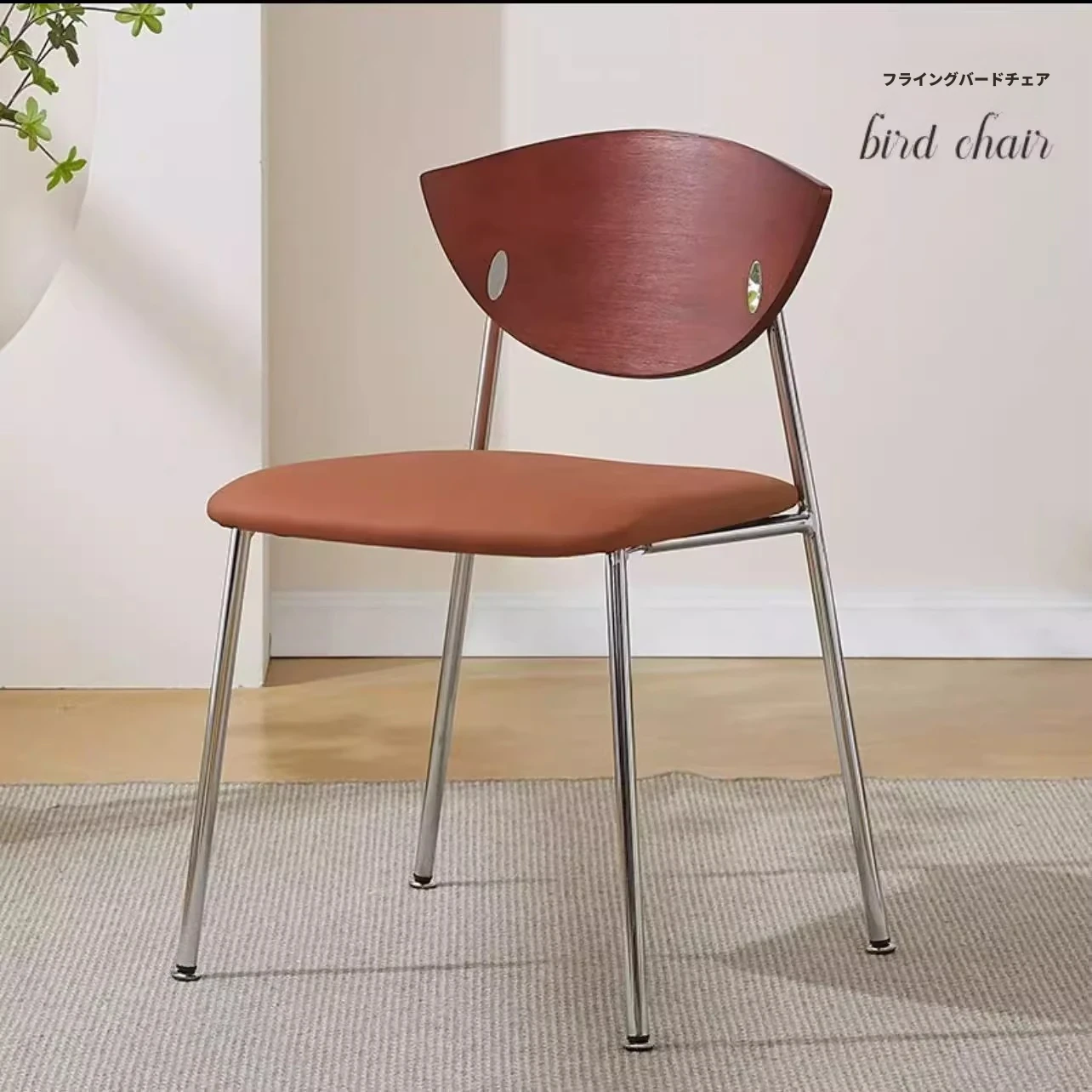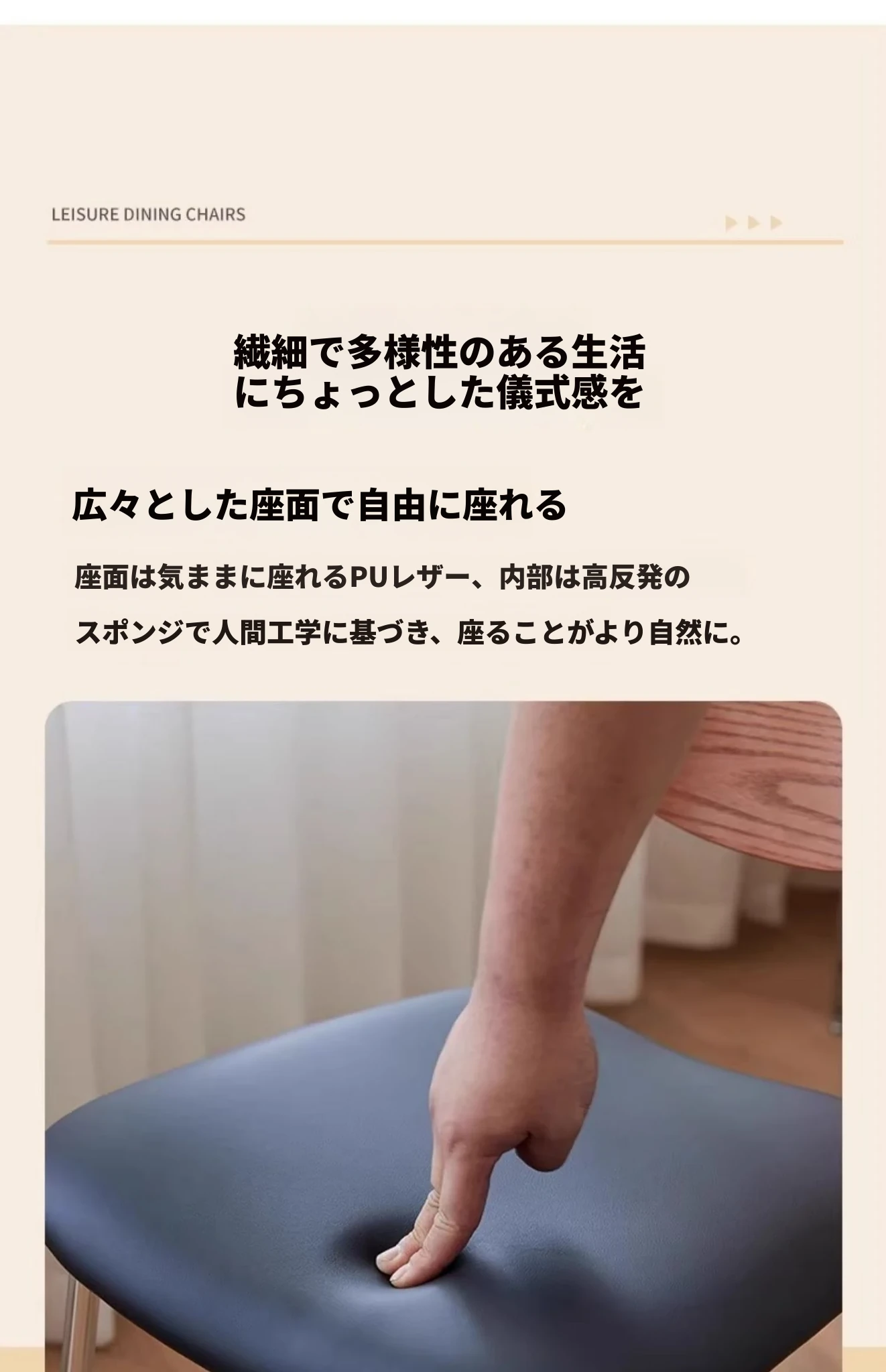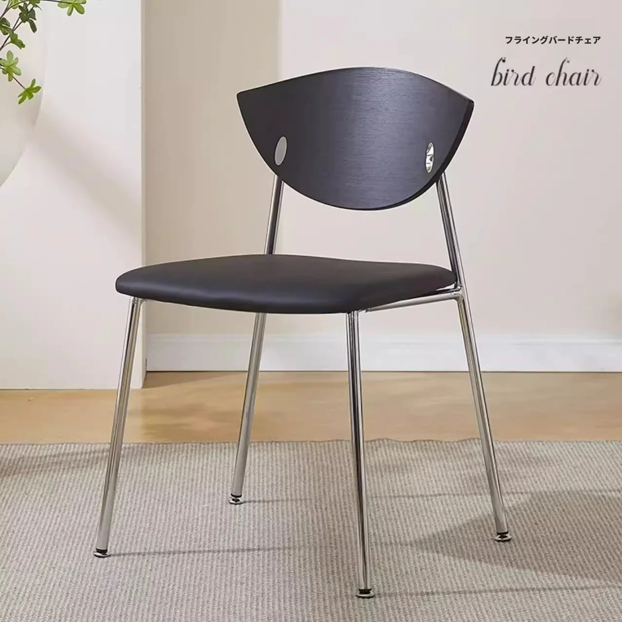 北欧スタイルの無垢材デザイナー・ダイニングチェア|シンプルでレトロな鉄製デスクチェア|おしゃれなリビングやダイニングに最適!快適な背もたれ付きで、食事や読書にぴったり!