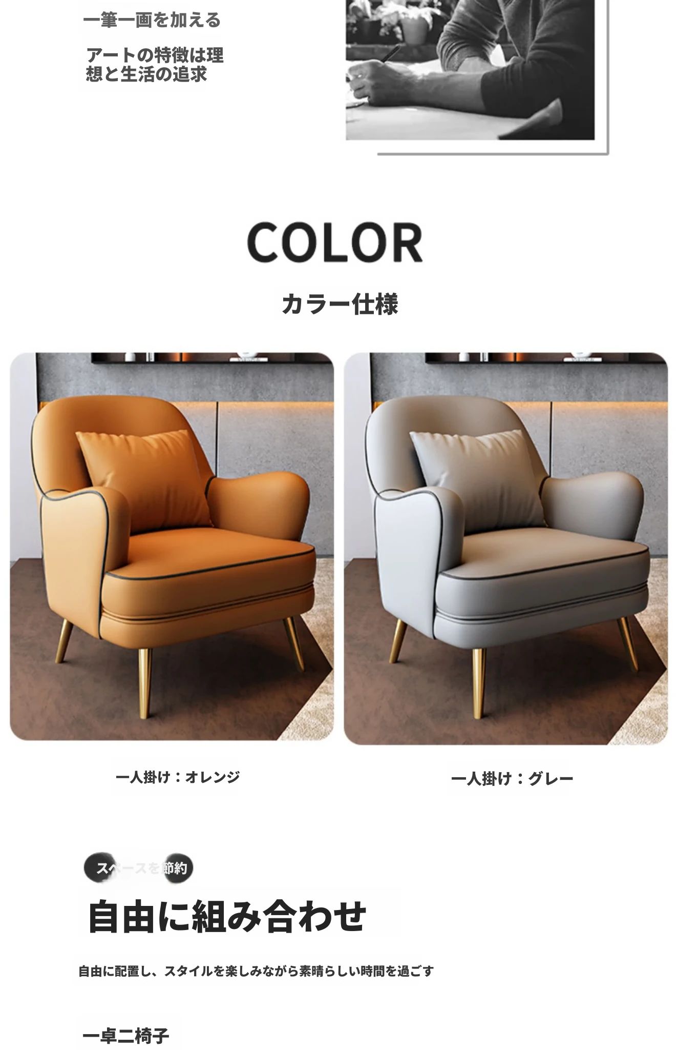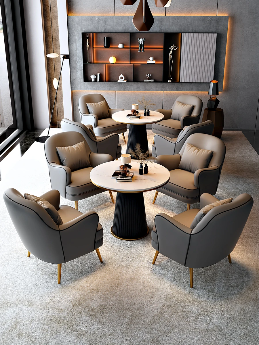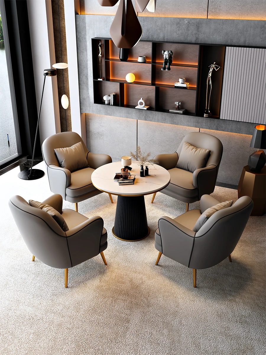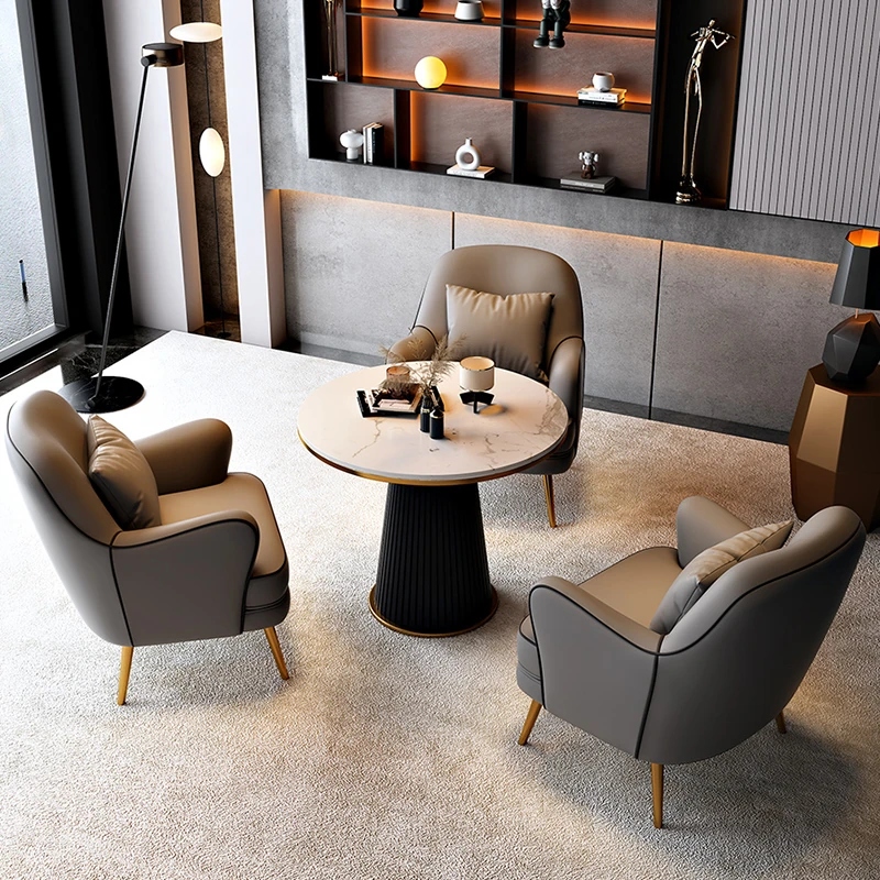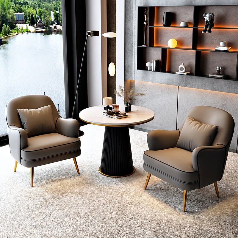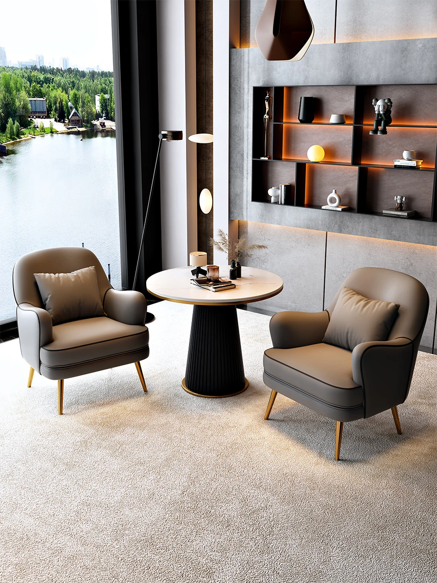 北欧スタイルの一人掛けソファチェア - 軽やかなラグジュアリーデザインで、リラックス空間に最適!商談や休憩にぴったりのテーブル&チェアセット。洗練されたおしゃれなインテリアを演出します。