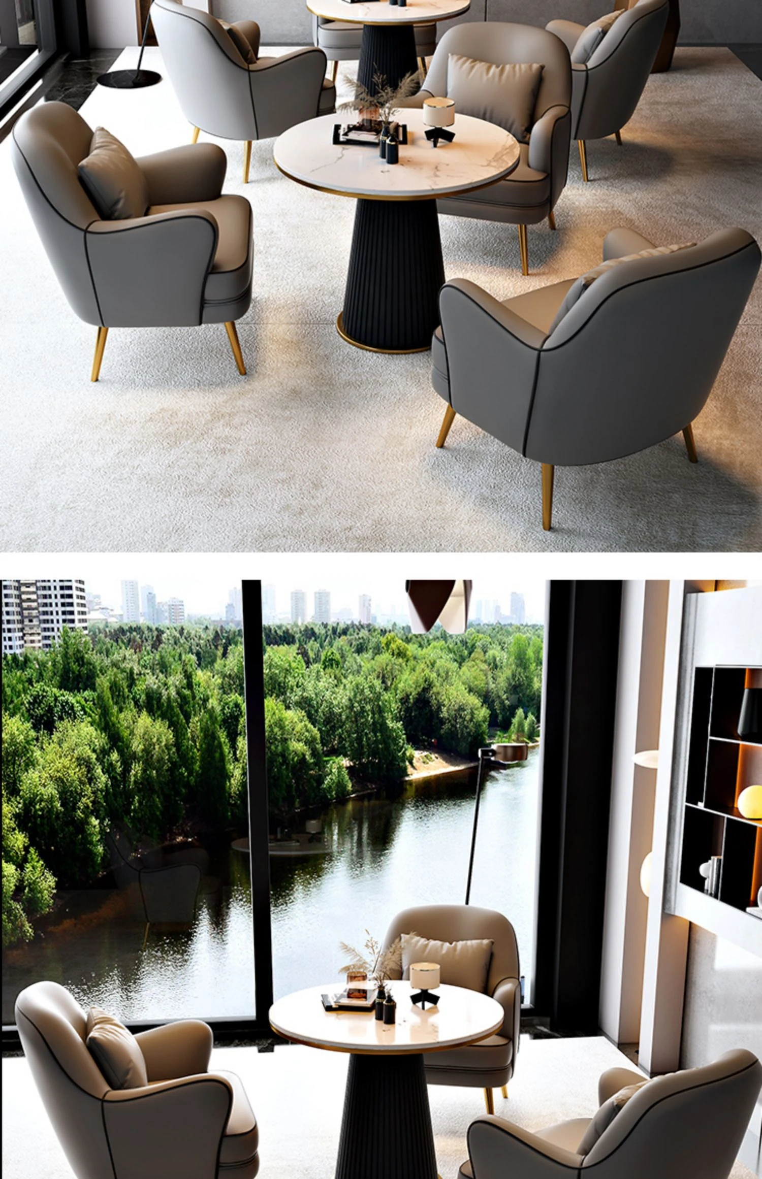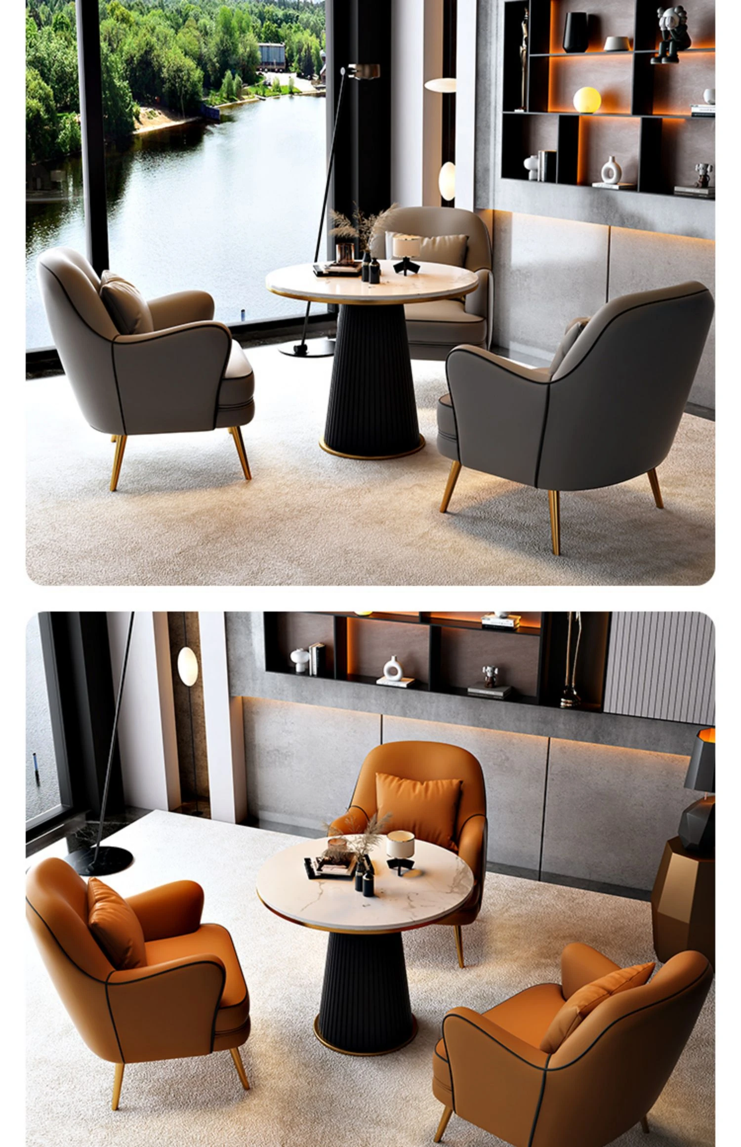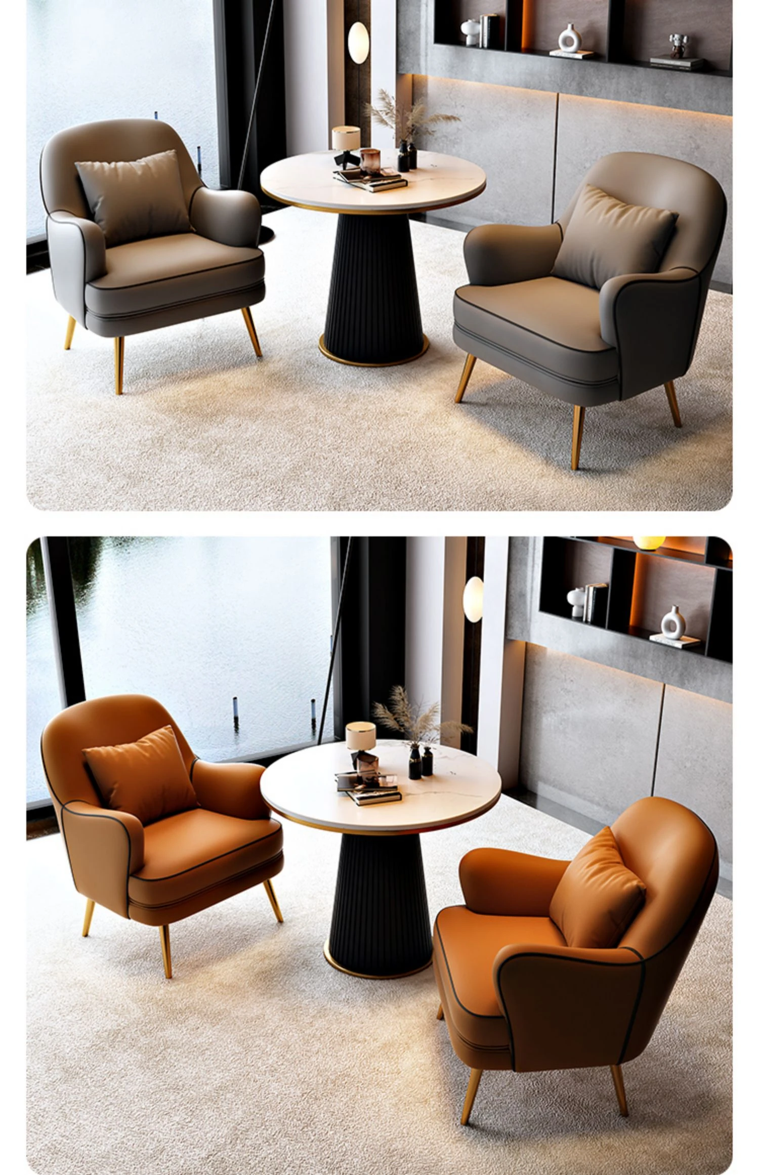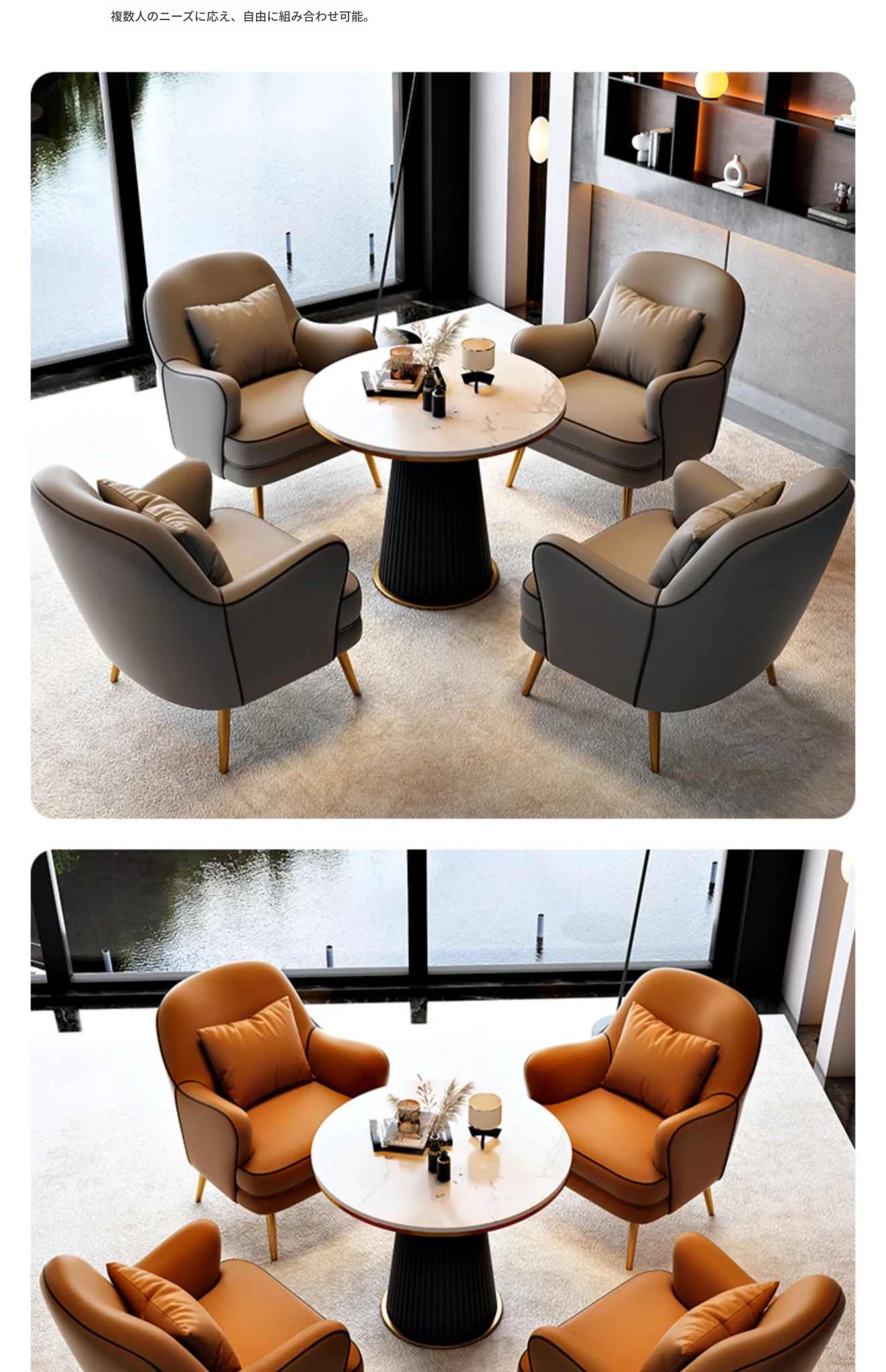 北欧スタイルの一人掛けソファチェア - 軽やかなラグジュアリーデザインで、リラックス空間に最適!商談や休憩にぴったりのテーブル&チェアセット。洗練されたおしゃれなインテリアを演出します。