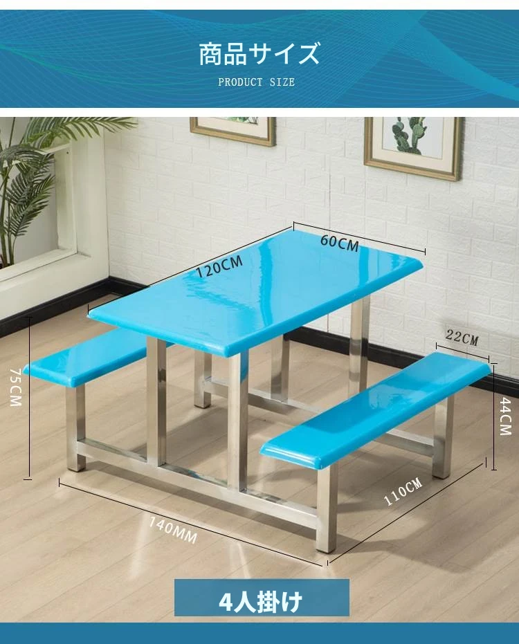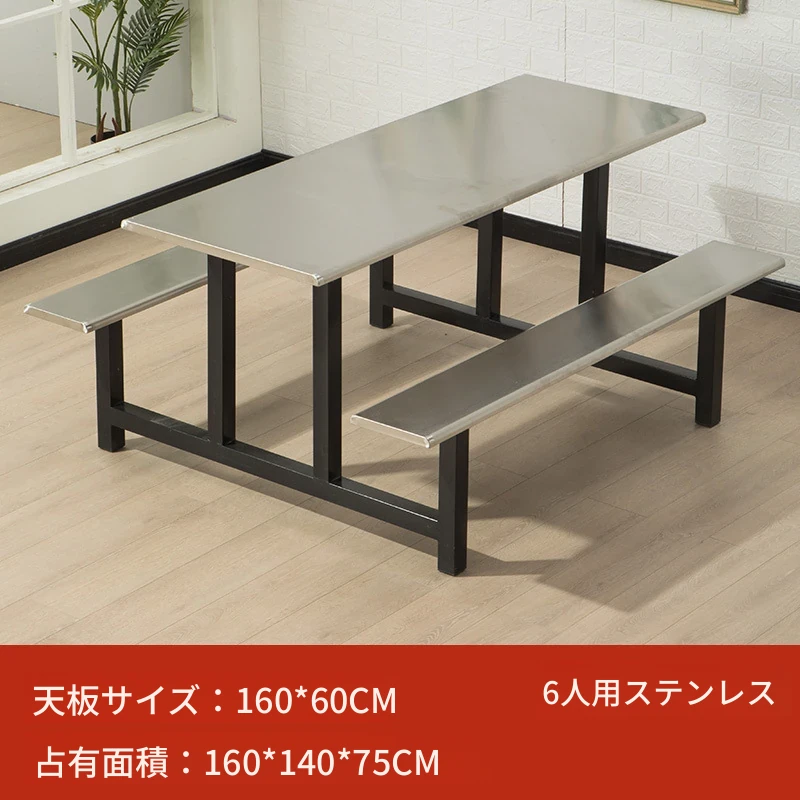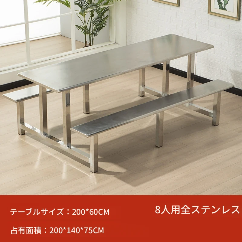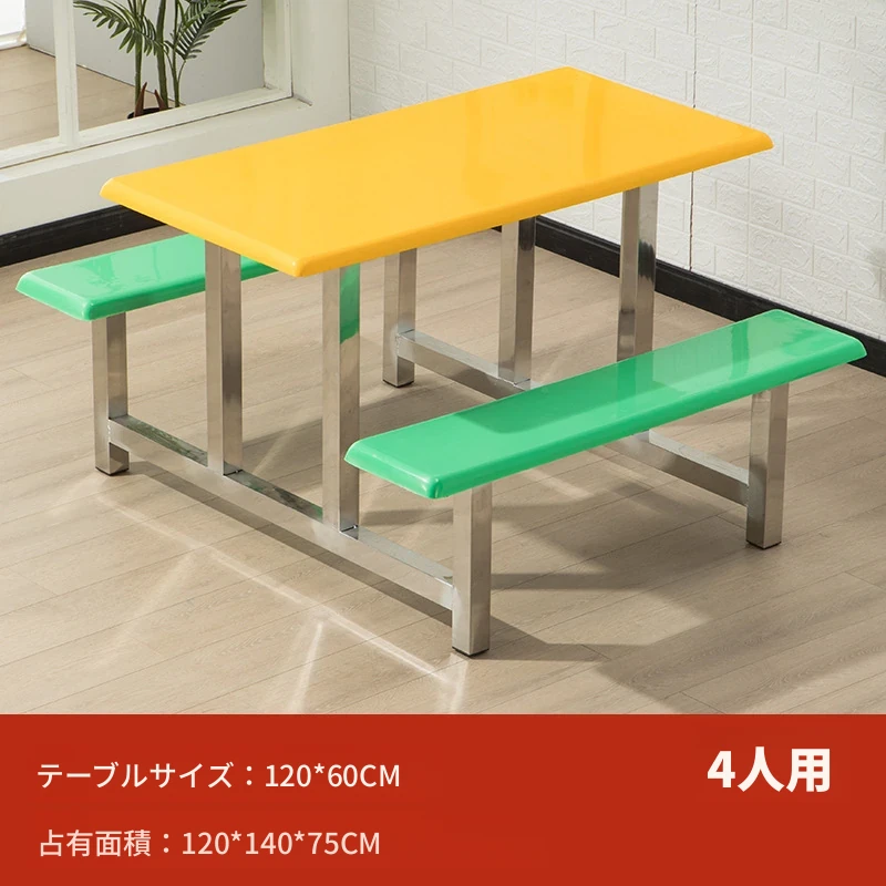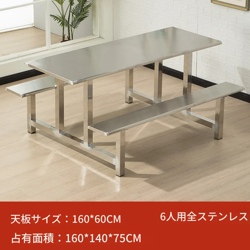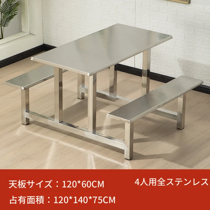ステンレス製学校食堂用テーブルセット - 学生や従業員に最適!4人・6人用コンビネーション、耐久性抜群で清潔感もあり、快適な食事空間を提供します。