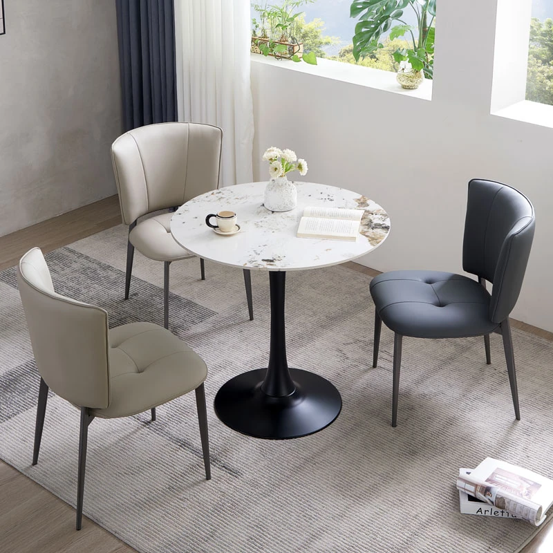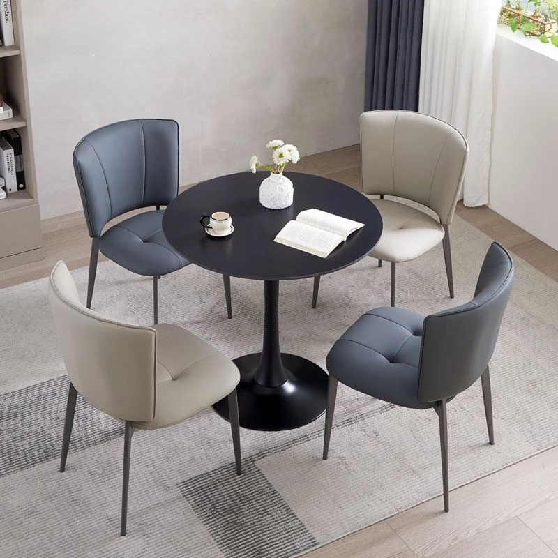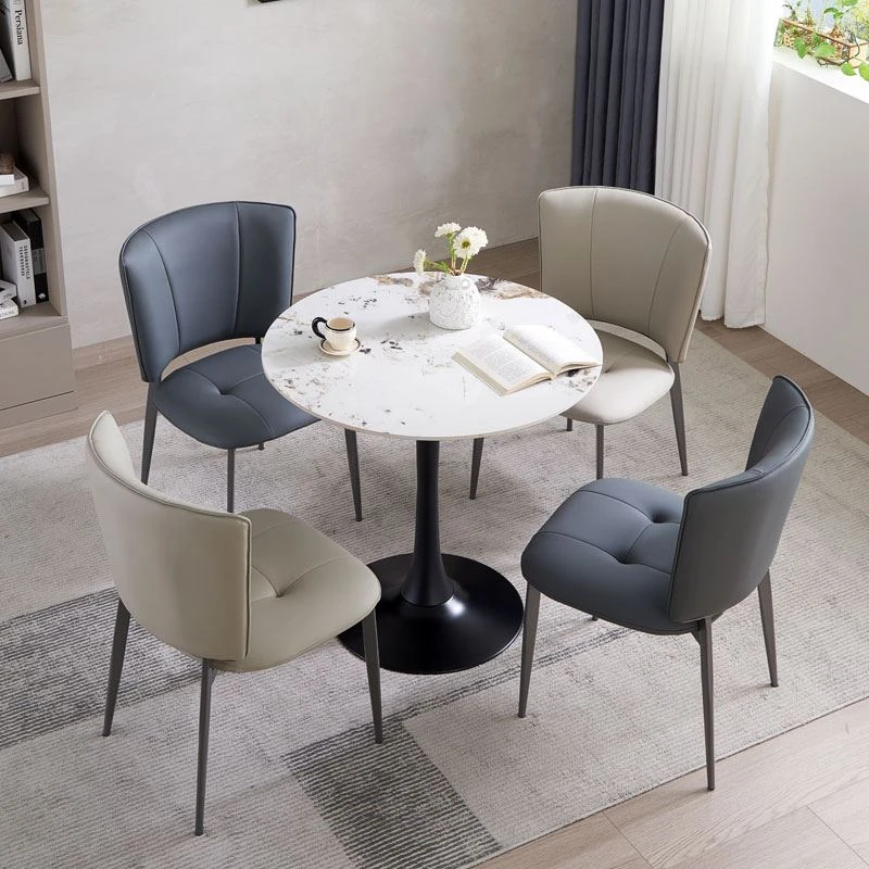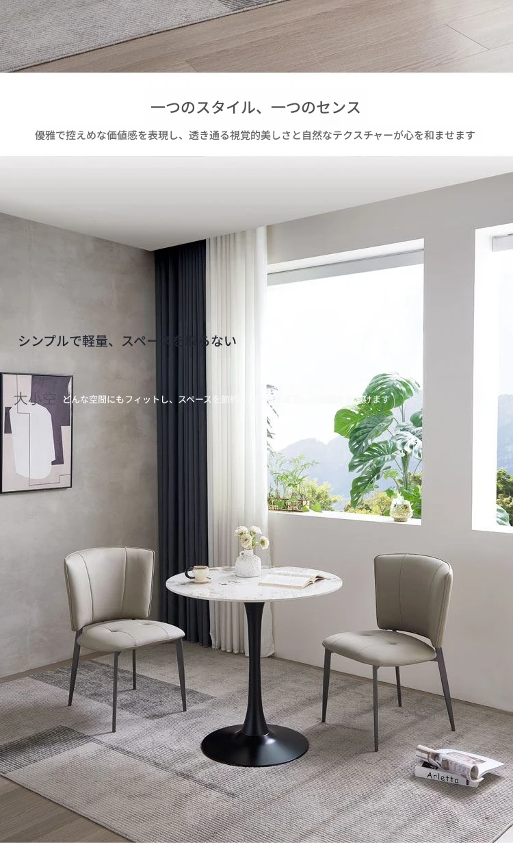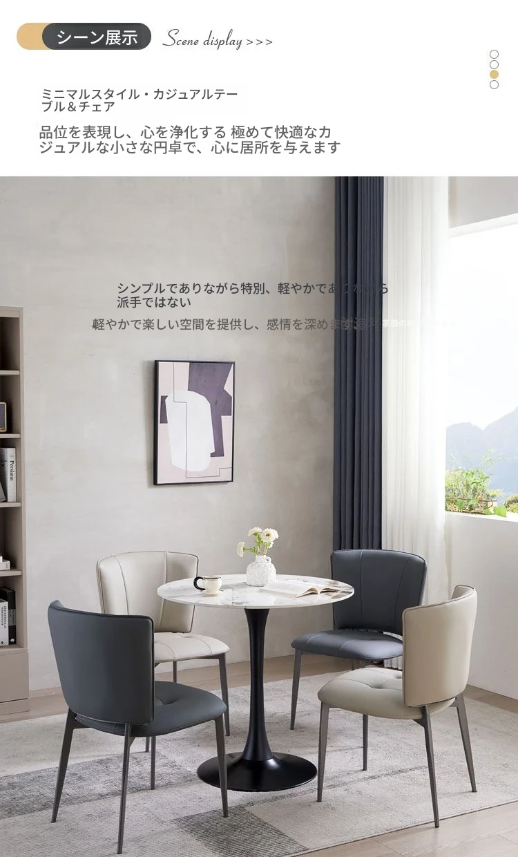 ラウンドテーブルセット - 洗練されたデザインの軽奢スタイル、オフィスやカフェの休憩スペースに最適な岩板製の円形会議テーブル。おしゃれで快適な空間を演出し、来客をお迎えするのにぴったりです!
