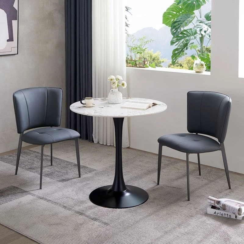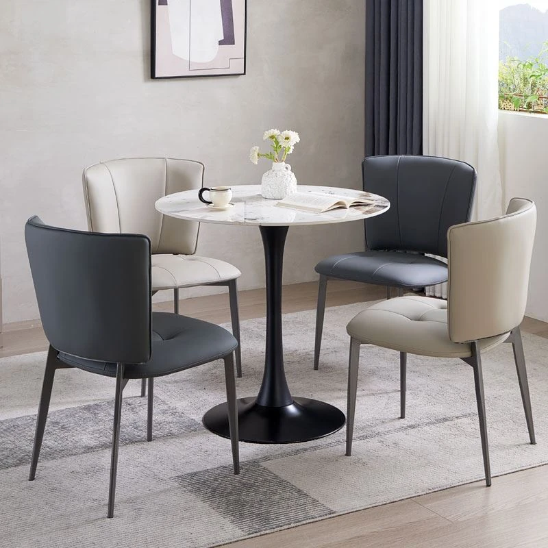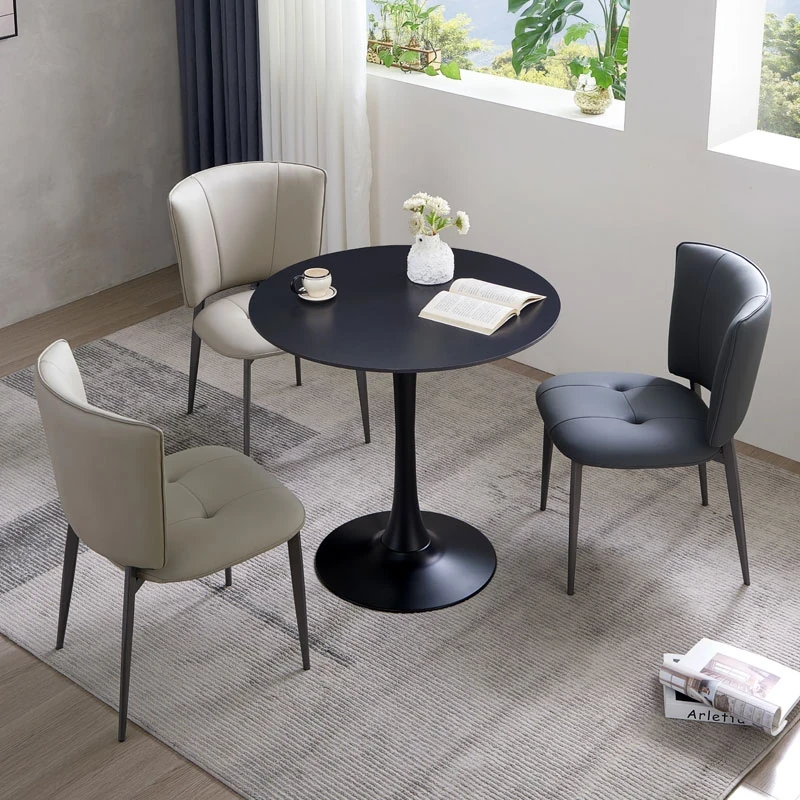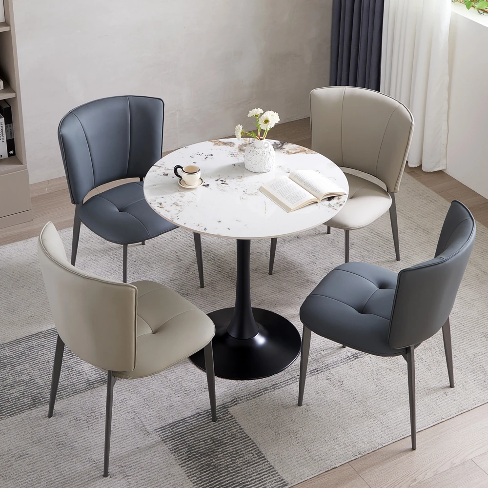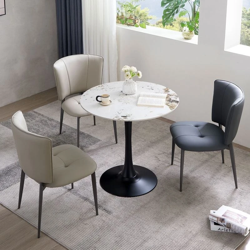 ラウンドテーブルセット - 洗練されたデザインの軽奢スタイル、オフィスやカフェの休憩スペースに最適な岩板製の円形会議テーブル。おしゃれで快適な空間を演出し、来客をお迎えするのにぴったりです!
