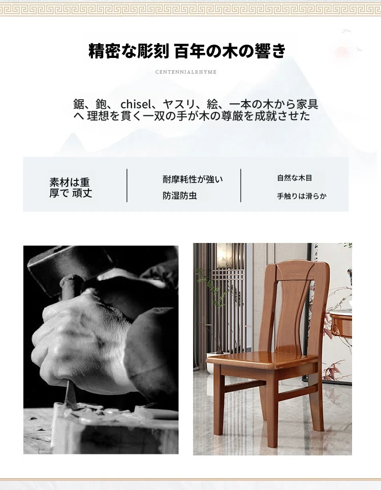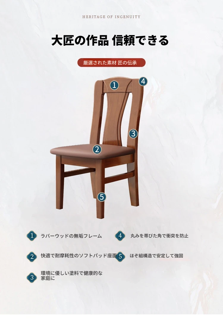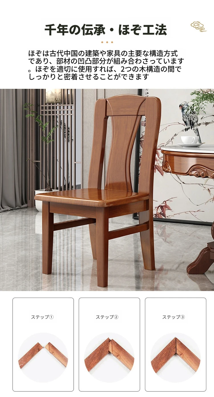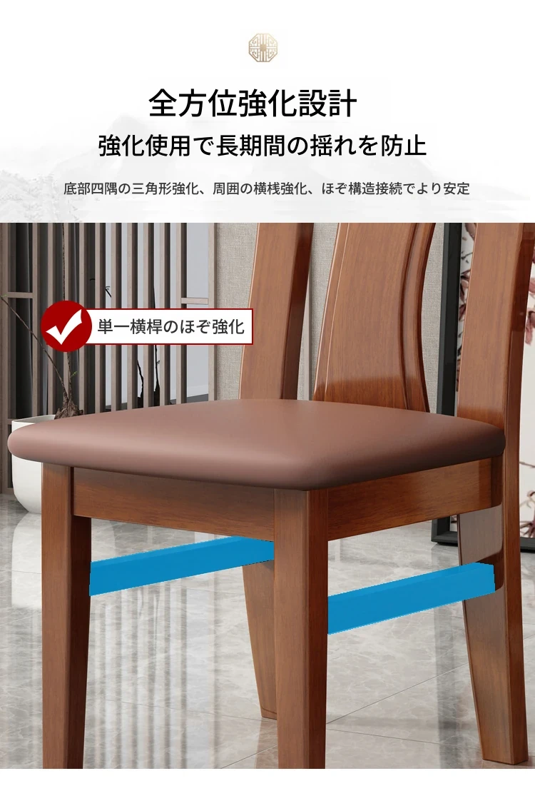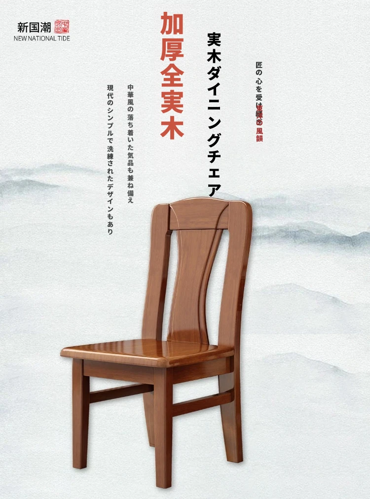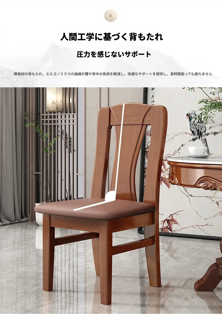 厚手全実木製ダイニングチェア|家庭用・組立済み・強化設計|現代的な中華スタイルの背もたれ付き|レストランや食卓に最適な座り心地をお届け!