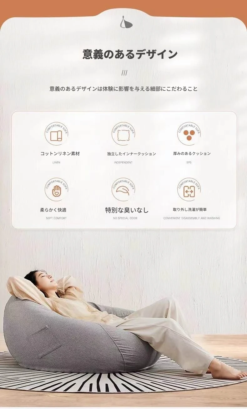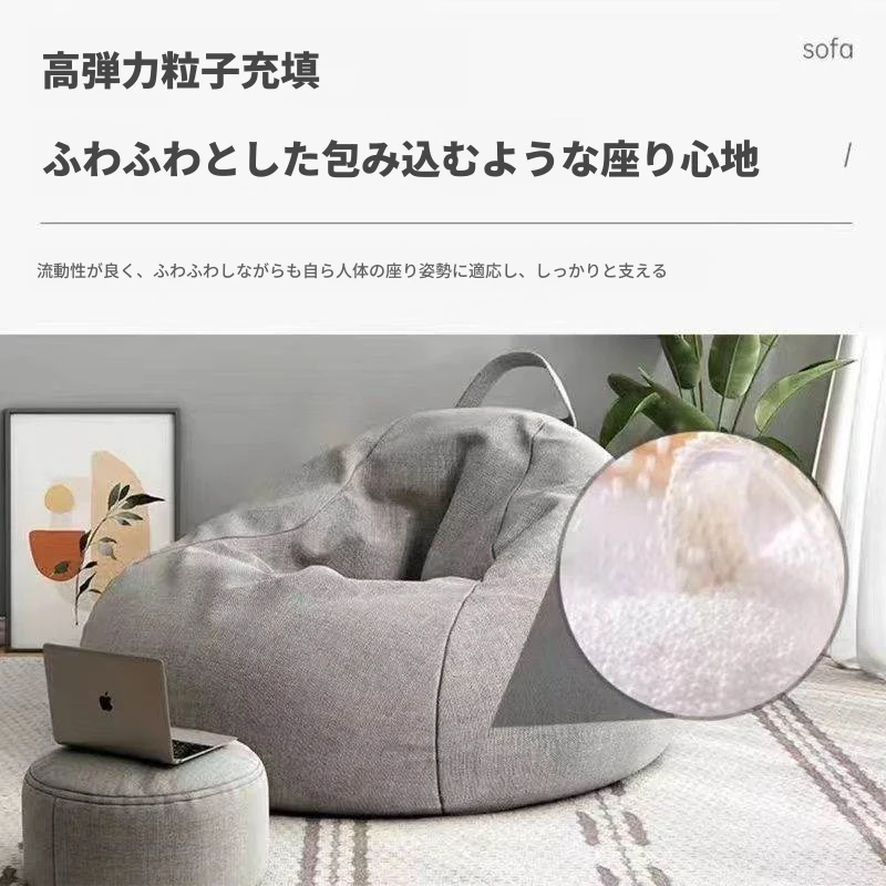 人気のリラックスソファ!豆袋タイプのカジュアルチェア。リビングや寝室、タタミスペース、バルコニーに最適。寝転んだり、くつろいだり、ちょっとした座り心地を楽しめるアイテムです。快適なひとときをお届けします!
