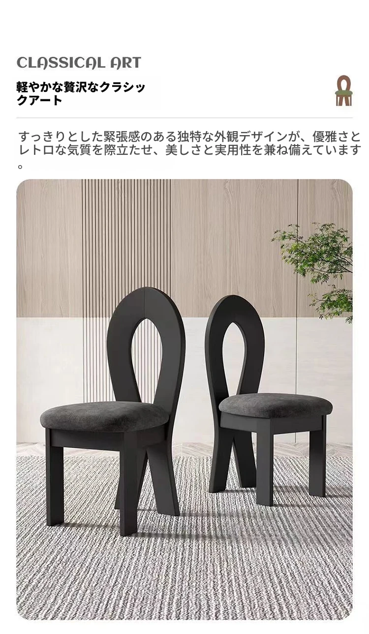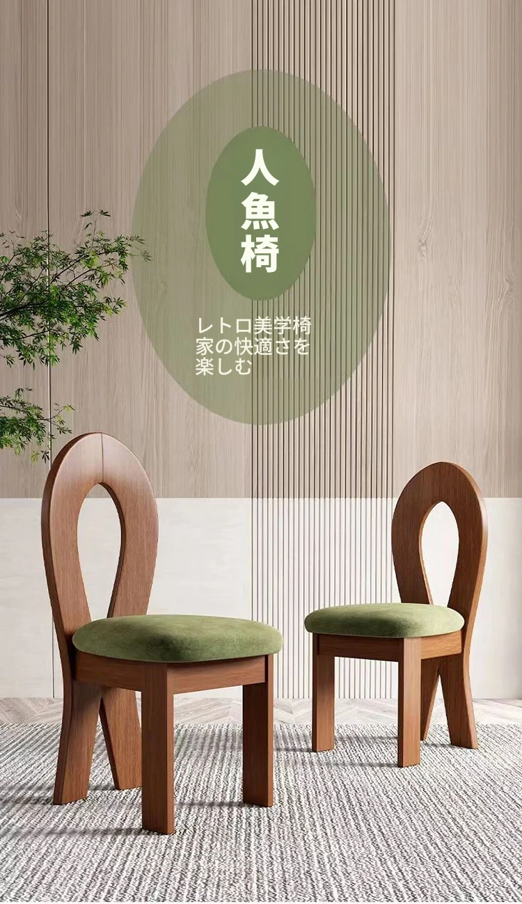 人魚椅【実木製】【フランス風レトロデザイン】中世の侘び寂びを感じる化粧椅子。ホテルや民宿、レストランに最適なスタイリッシュなダイニングチェア。あなたの空間に優雅さと温もりをプラス!