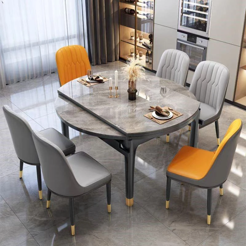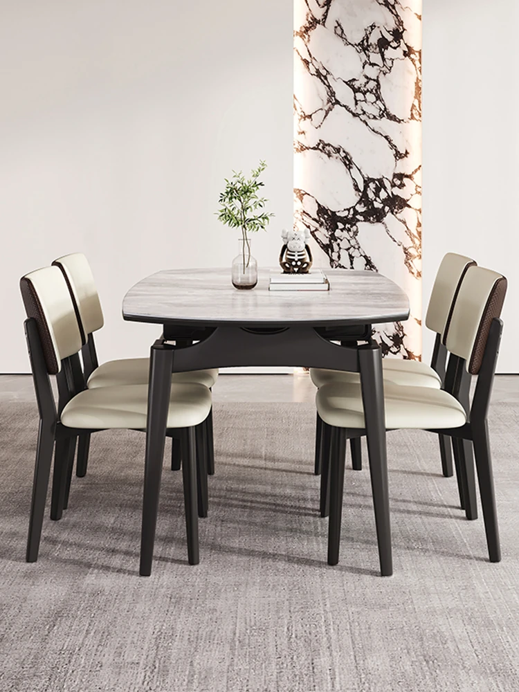 Foldable Extendable Rock Plate Dining Table - Stylish Solid Wood Design for Small Spaces, Versatile Round/Square Shape, Microcrystalline Stone Finish, Modern Luxury, Perfect for Your Home