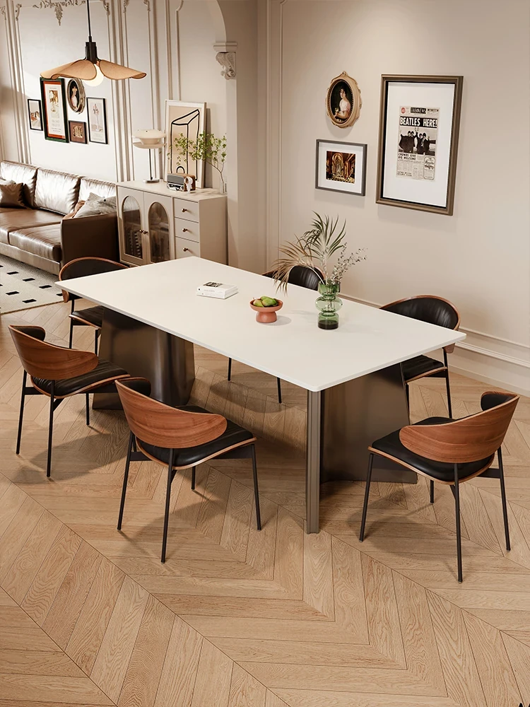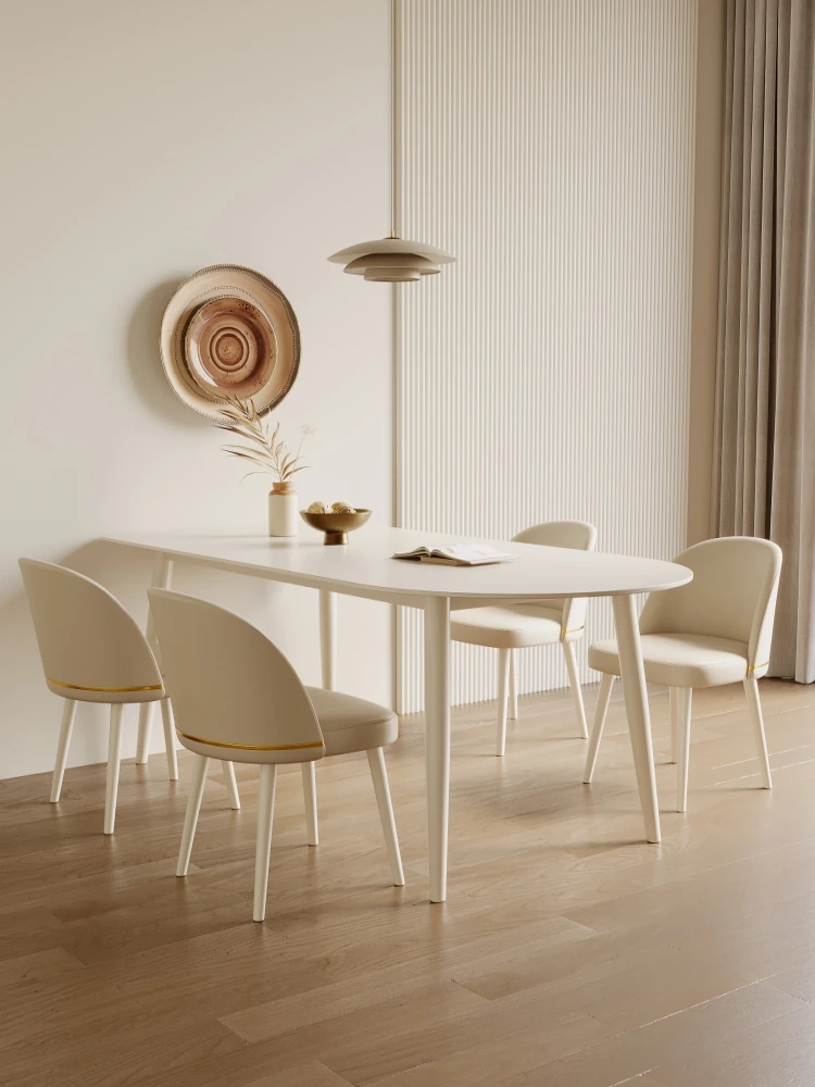Modern Minimalist Cream-Style Dining Table with Integrated Island Design - Perfect for Small Spaces, Elegant and Trendy Family Dining Set