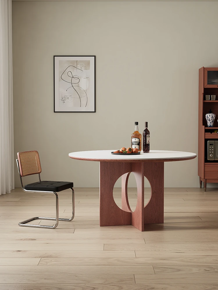 2025 New Minimalist Solid Wood Rock Plate Dining Table - Expandable Round Table for Small Homes, Perfect for Family Meals