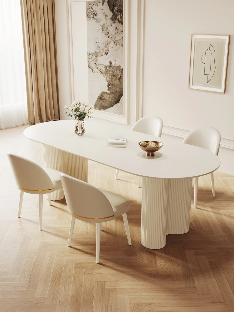French Cream Oval Dining Table Set - Modern Minimalist Pure White Stone Table and Chairs for Small Spaces, Perfect for Chic Home Décor
