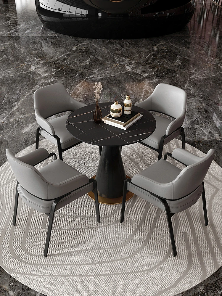 Nordic Minimalist Reception Area Furniture Set - Round Table with Four Chairs for Sales Offices and Hotel Lobbies, Perfect for Meetings and Guest Interactions