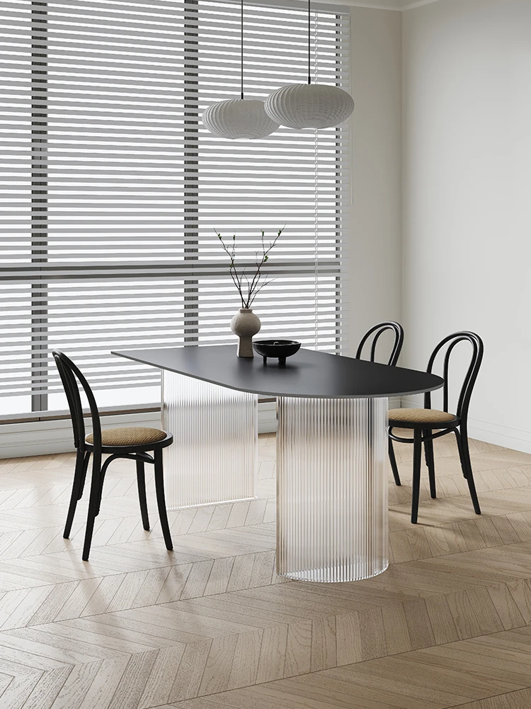 Elegant Italian Minimalist Stainless Steel Rock Plate Dining Table Set - Designer High-End Home Luxury Marble Oval Dining Table and Chairs