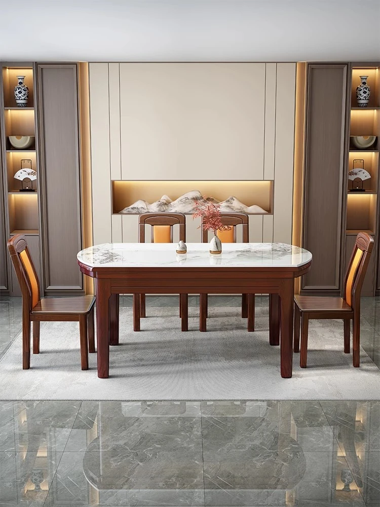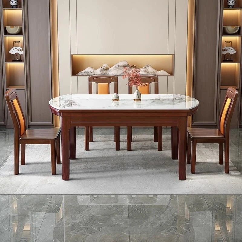 Expandable Solid Wood Dining Table with Rock Panel - Versatile Folding Square and Round Design for Small Luxury Homes in Foshan, Guangdong