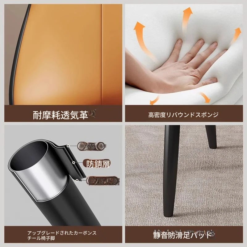 イタリアンスタイルの岩板ダイニングテーブル&チェアセット - カーボンスチール製、コンパクトなモダンデザインで、食事をより上質に演出。小さなスペースにも最適なラグジュアリーなアイテムです!