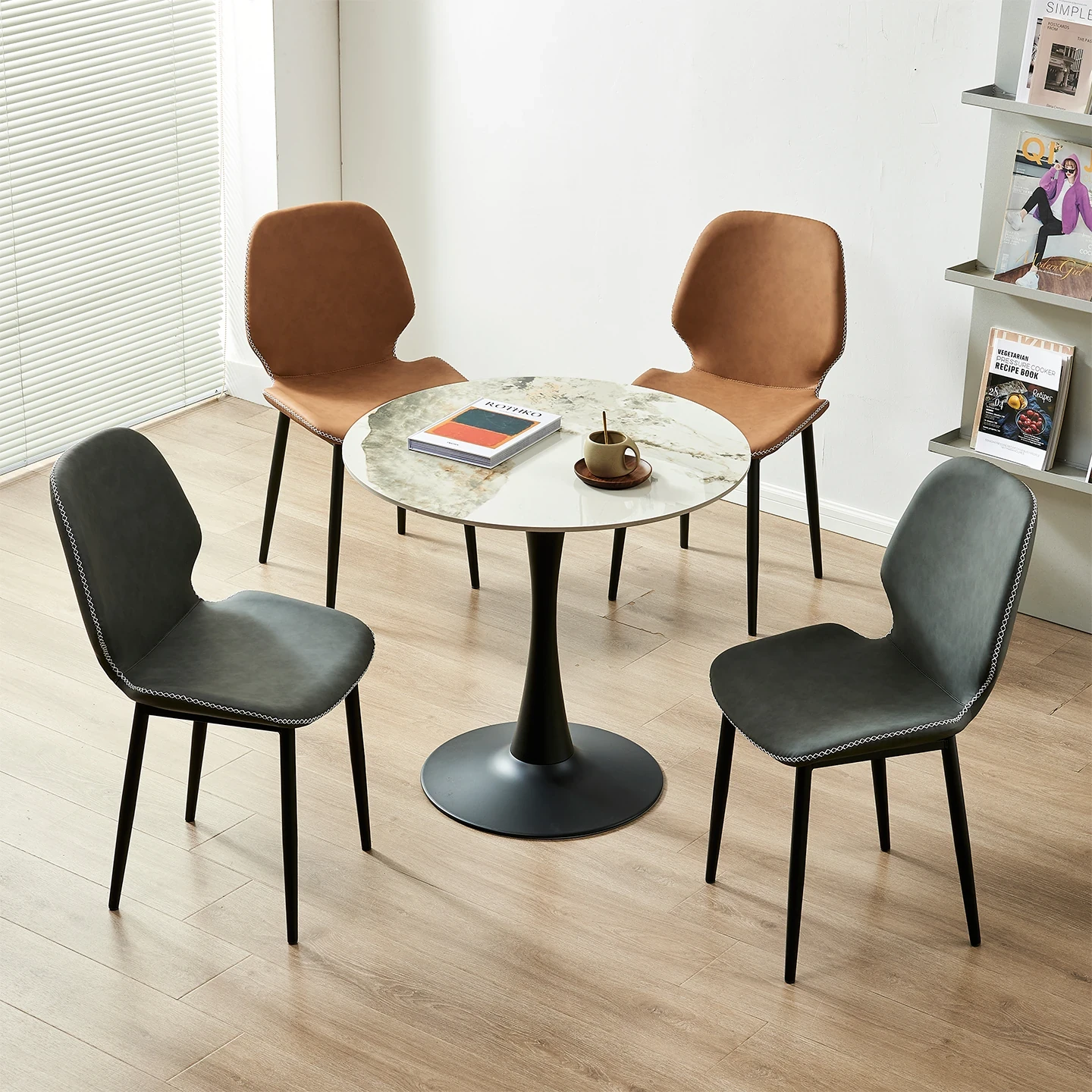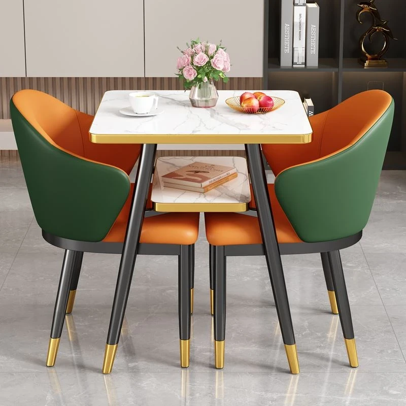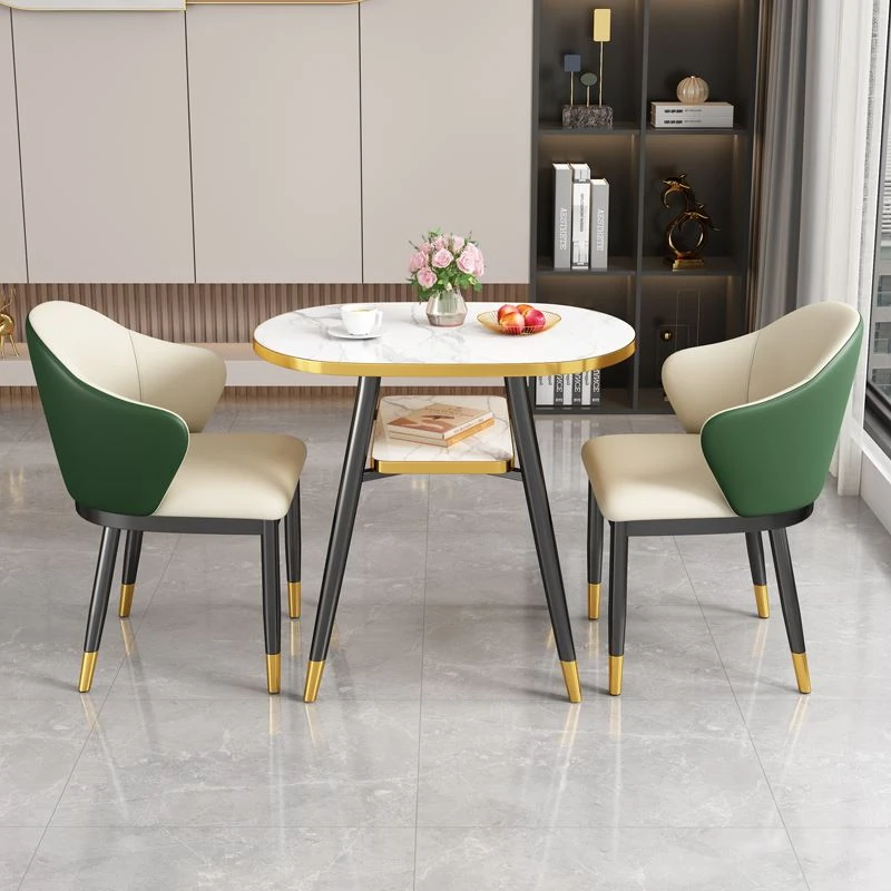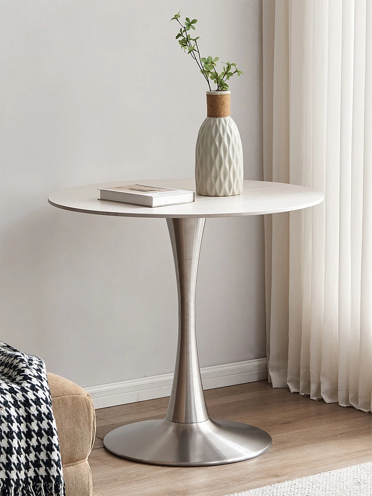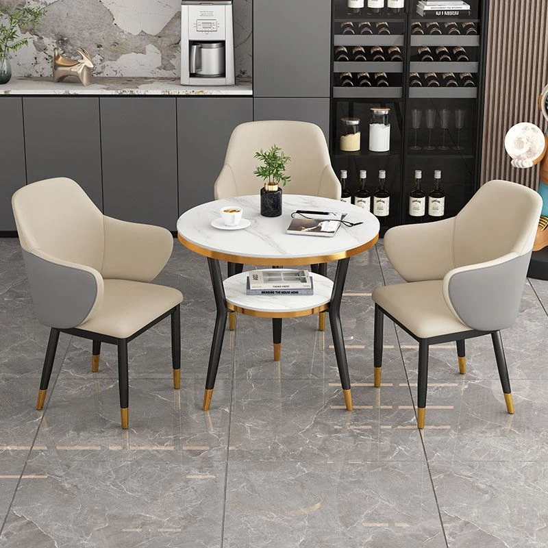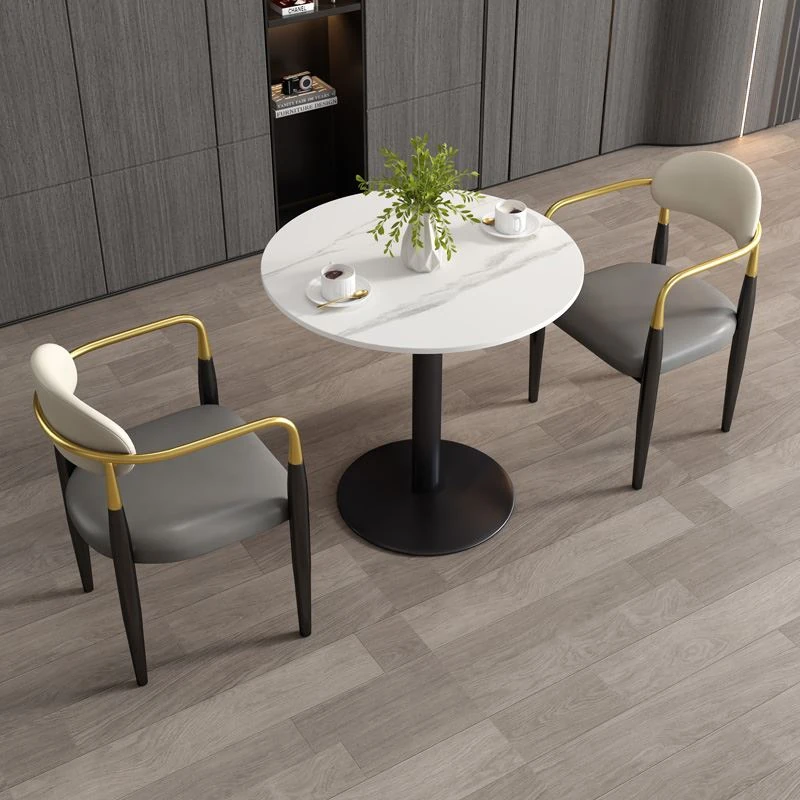 洗練されたデザインの軽奢岩板ダイニングテーブルセット|オフィスやカフェでの商談に最適なコンパクトな円卓|リラックスできるバルコニーやティーショップにぴったり!