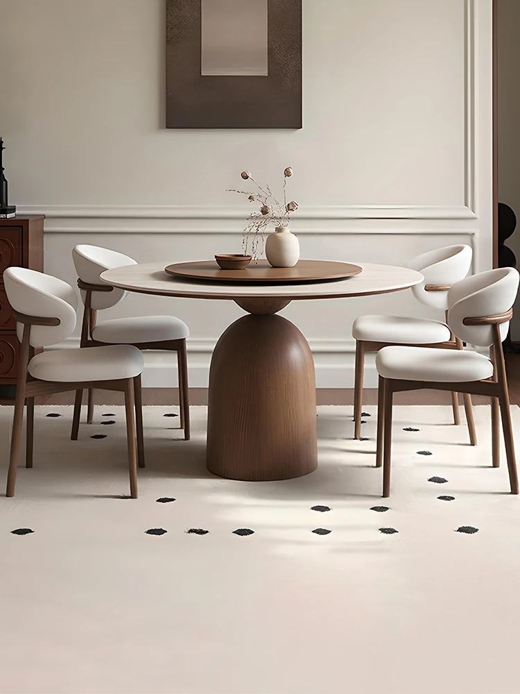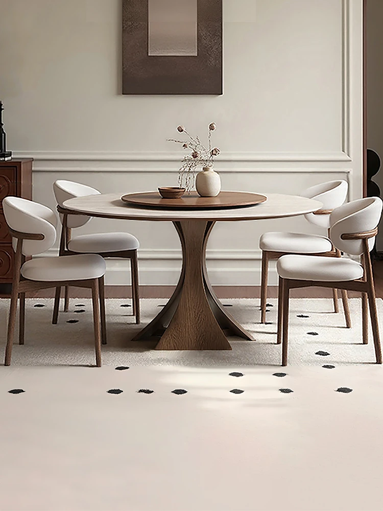 CURIETAN ライム 中古風洞石岩板ダイニングテーブル 丸型 無垢材 家庭用 小型住宅向け 回転プレート付きの食卓