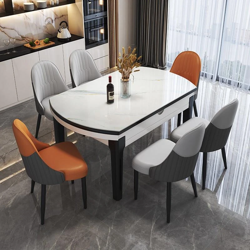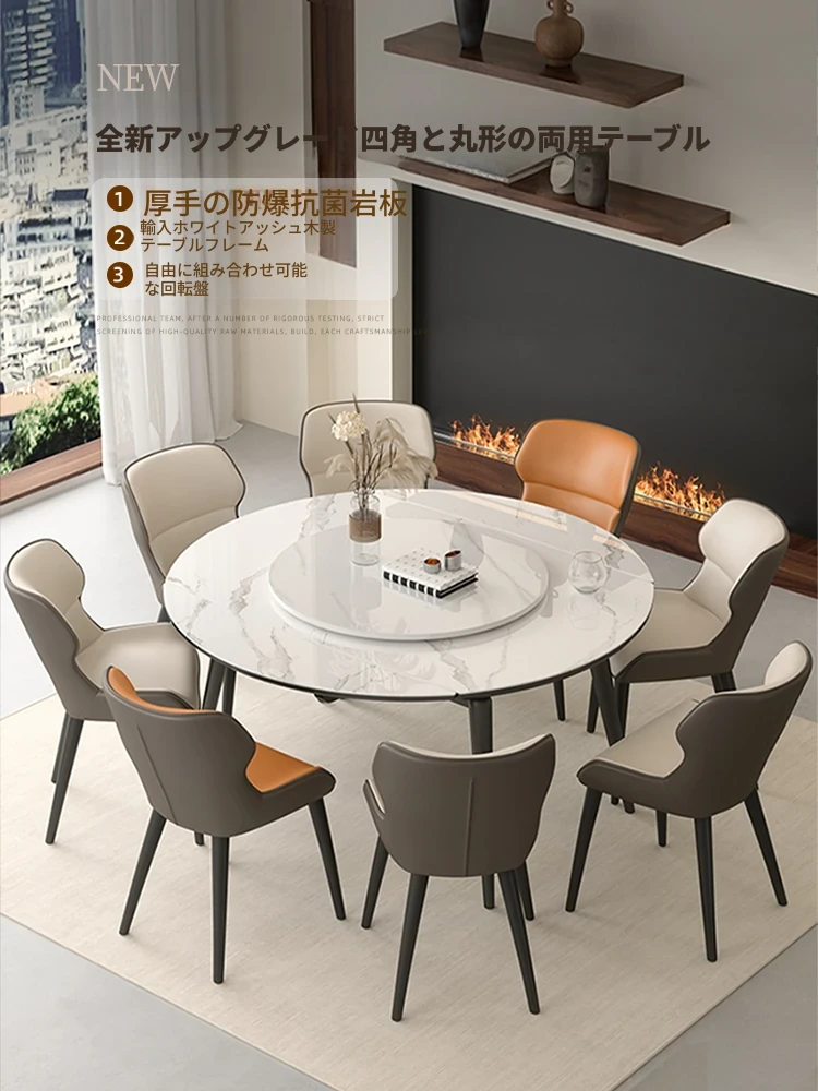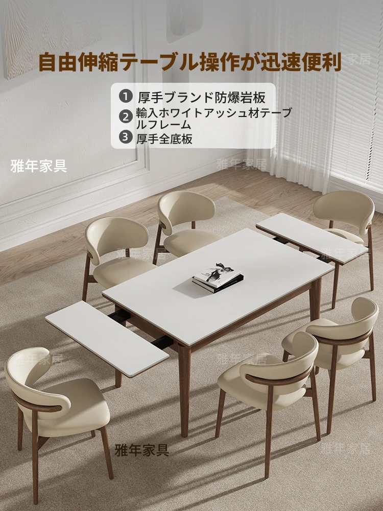 現代的なミニマリストデザイン!岩板製の伸縮可能な折りたたみダイニングテーブル。小型住宅に最適なスクエア&ラウンド両用スタイル。軽やかな高級感で、家族や友人との楽しい食事シーンを演出します!