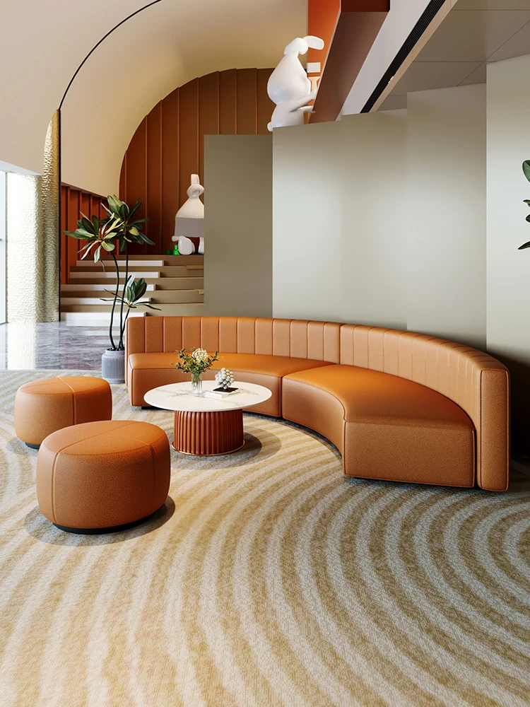 イタリアンスタイルのホテルロビー用半円形デザインソファ|快適な商談スペースを演出する高級受付ソファ|洗練された空間を提供する理想的な接客用ソファ